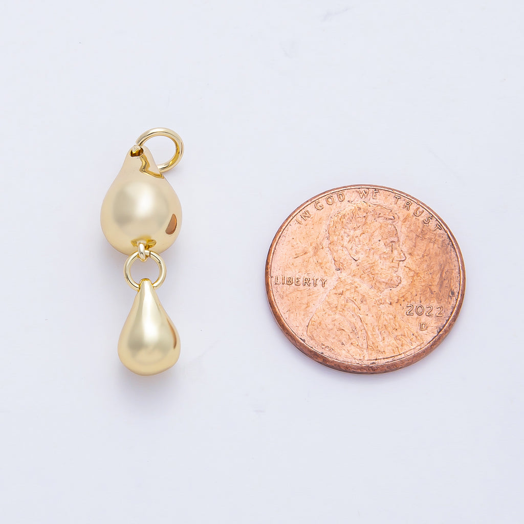 18K Gold Filled 24mm Double Teardrop Dangling Drop Charm in Gold & Silver | AF1432