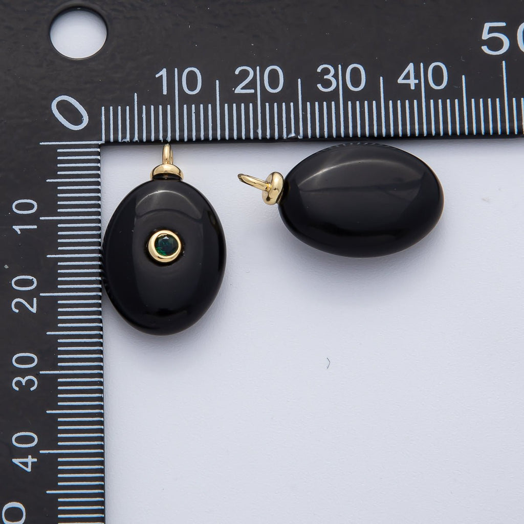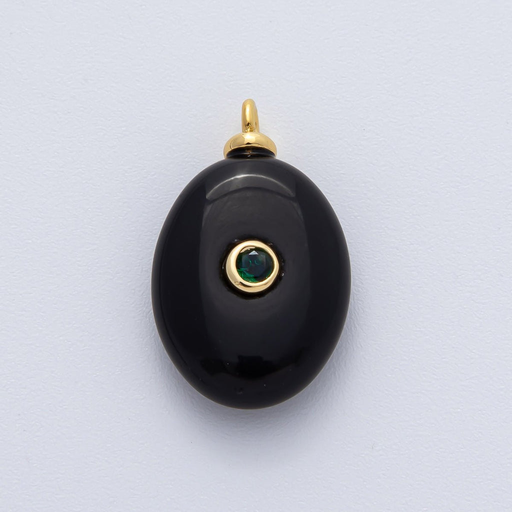18K Gold Filled 25mm Black Onyx with Emerald Green CZ Oval Natural Gemstone Pendant | AF1448