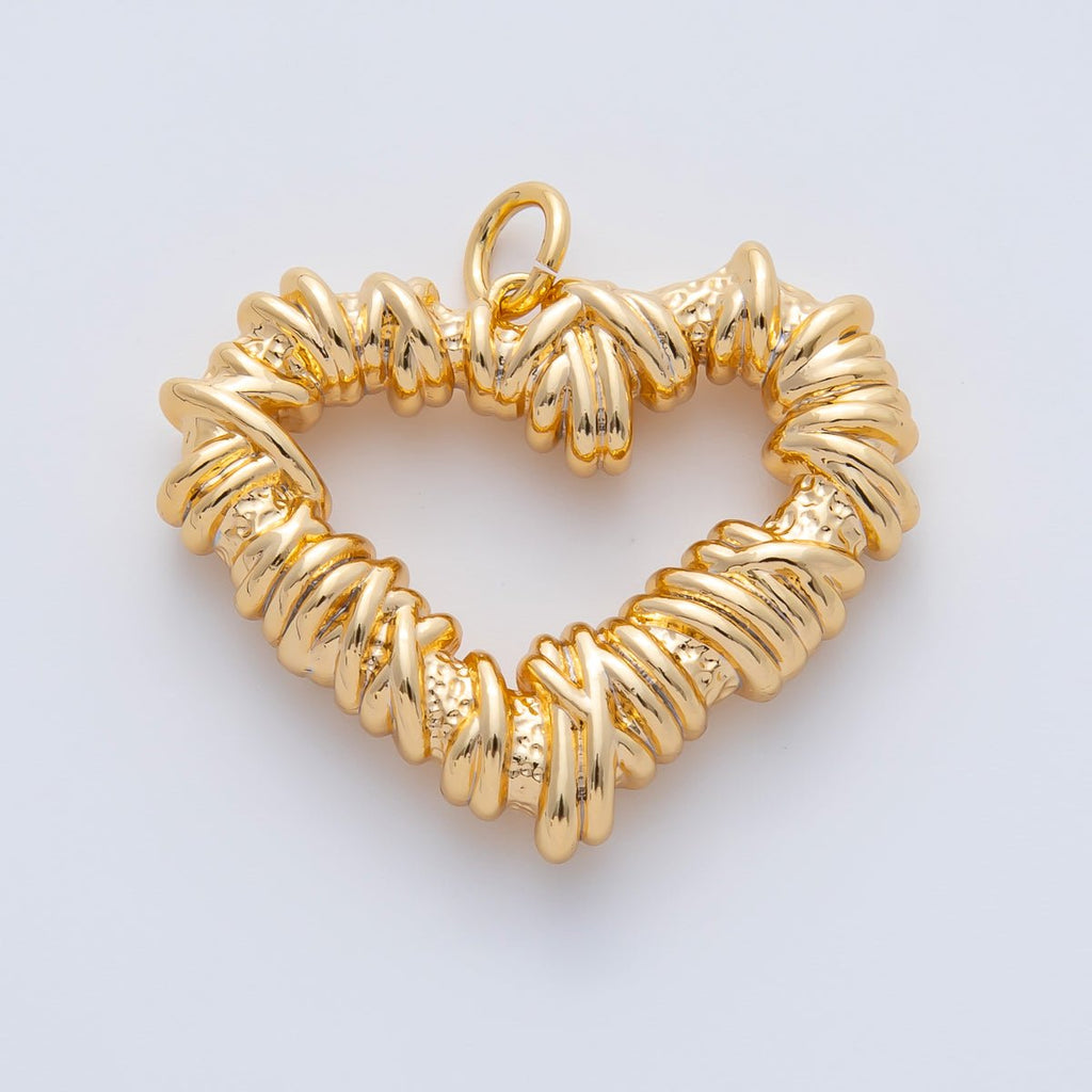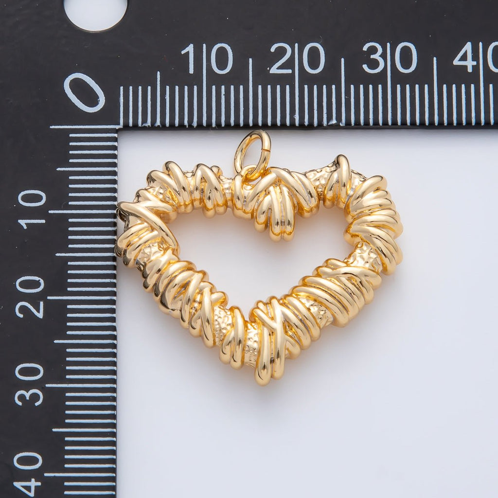 18K Gold Filled 25mm Hammered Knot Open Heart Charm | AF1411