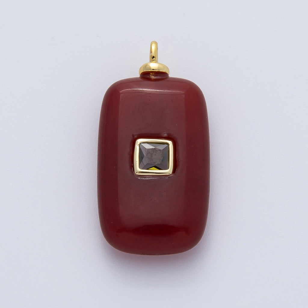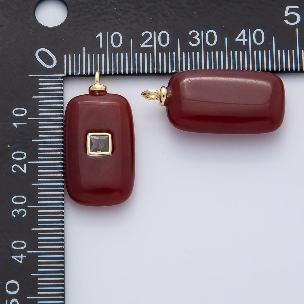 18K Gold Filled Clear Baguette CZ Red Carnelian Tube Gemstone Charm | AF1453