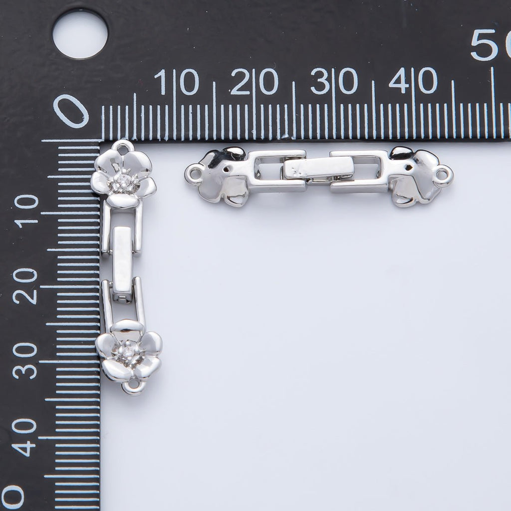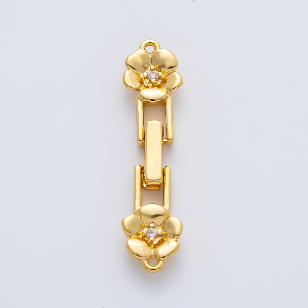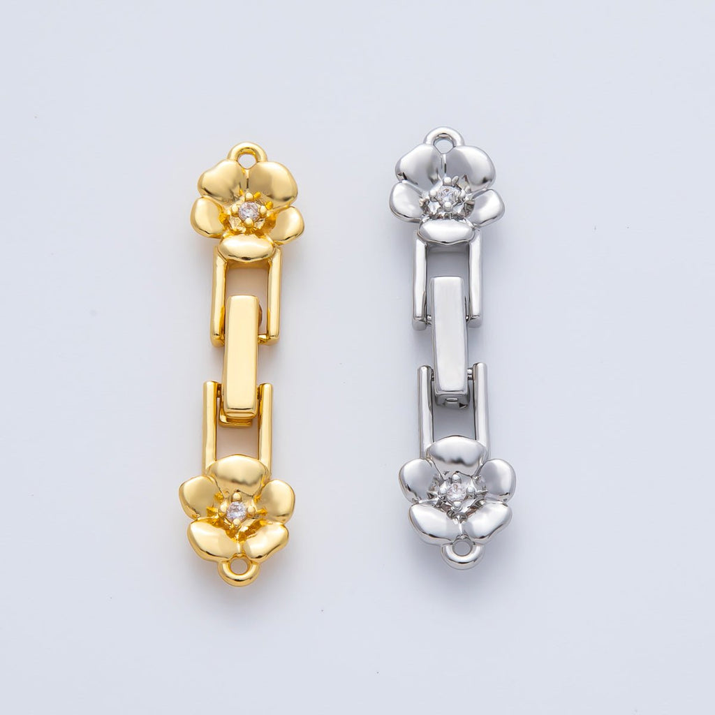 18K Gold Filled 34mm Clear CZ Twin Flower Fold-Over Clasps Closure Finding in Gold & Silver | Z1455