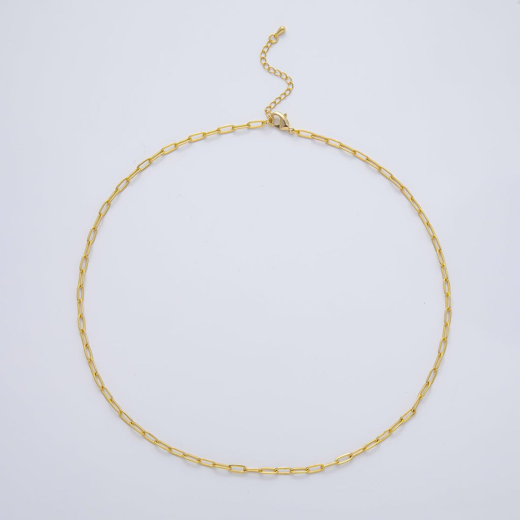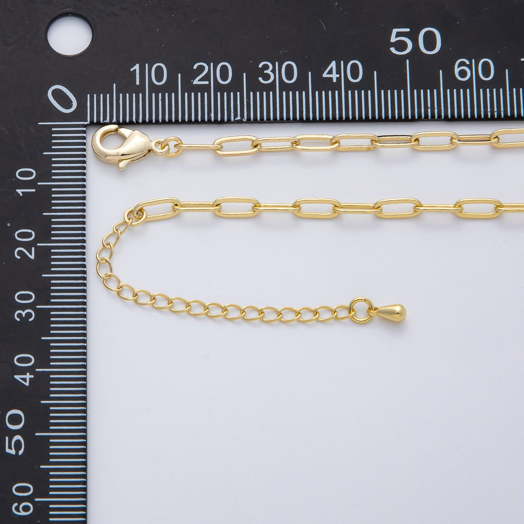 18K Gold Filled 3mm Mini Paperclip Chain 18 Inch Necklace w. Extender | WA-1187