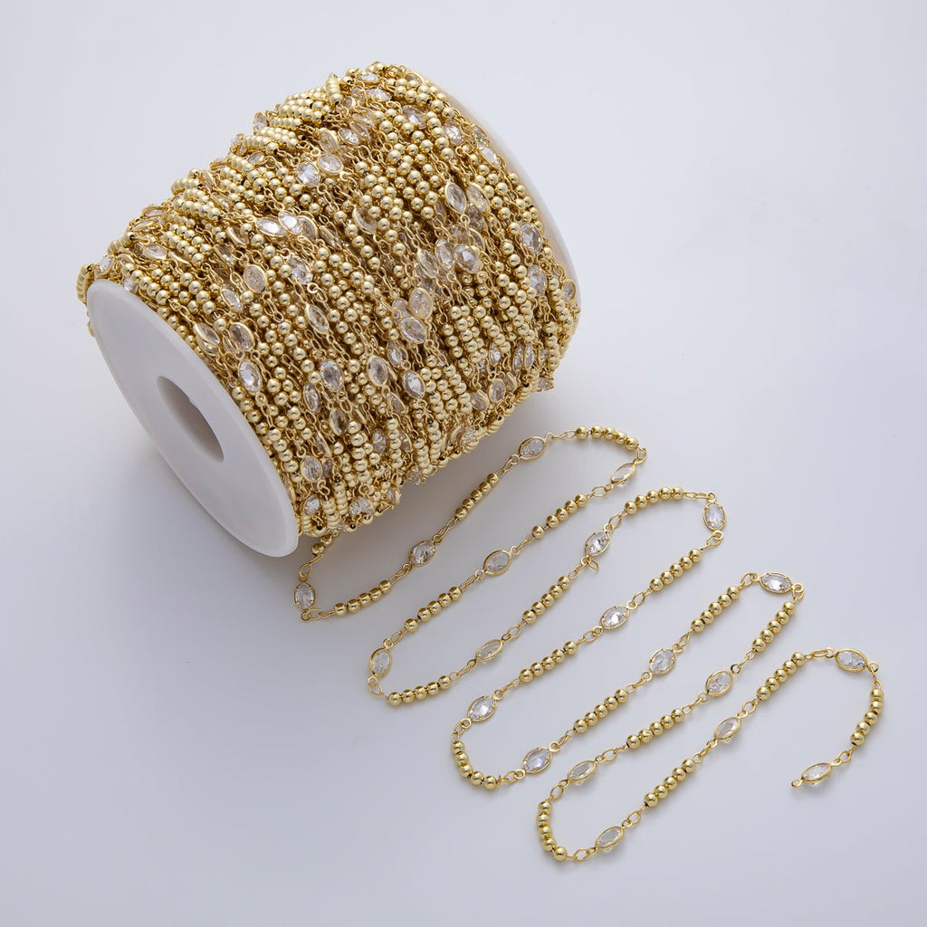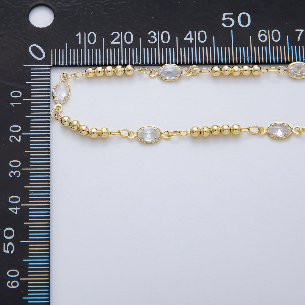 18K Gold Filled 3mm Clear Oval CZ Bezel Bead Unfinished Chain by Yard | Roll-1776