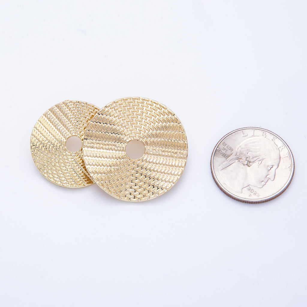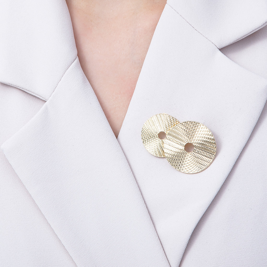 18K Gold Filled 47mm Double Hammered Woven Vinyl Round Brooch Pin | BH-058