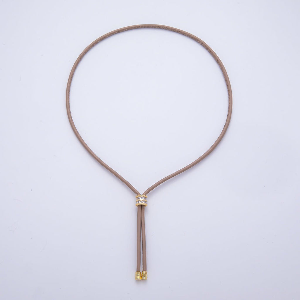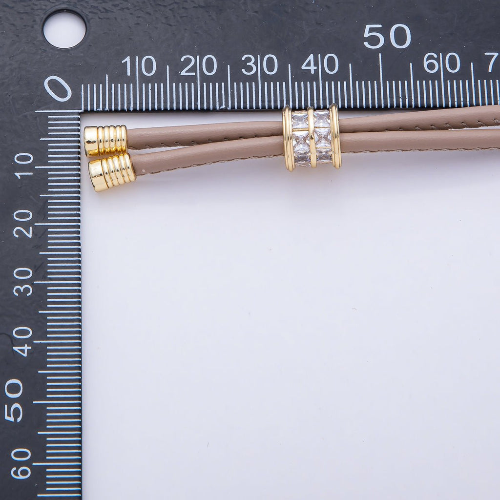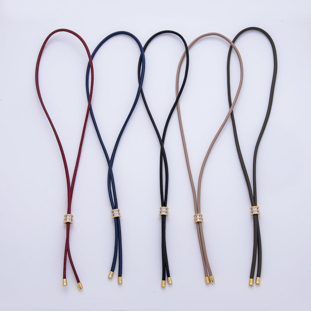 18K Gold Filled 4mm Red, Khaki, Brown Leather Bolo Chain w. Rectangular CZ 26 Inch Necklace | WA-256 WA-266 WA-375 WA-1661 WA-1669 WA-2048