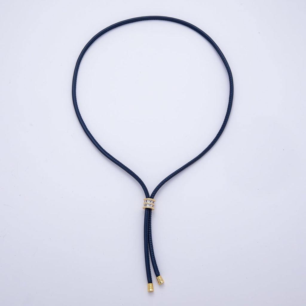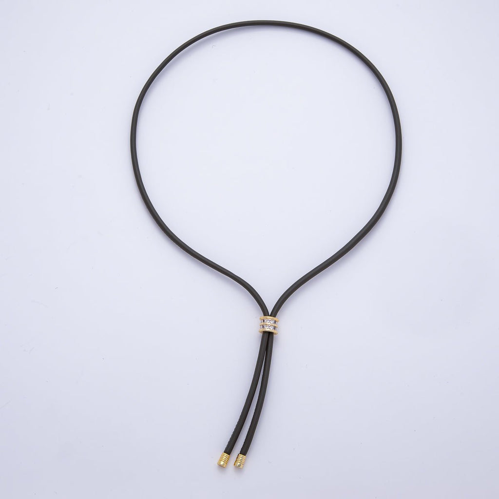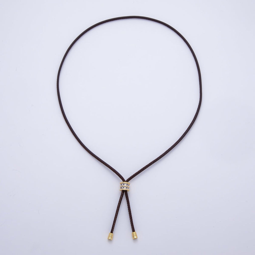18K Gold Filled 4mm Red, Khaki, Brown Leather Bolo Chain w. Rectangular CZ 26 Inch Necklace | WA-256 WA-266 WA-375 WA-1661 WA-1669 WA-2048