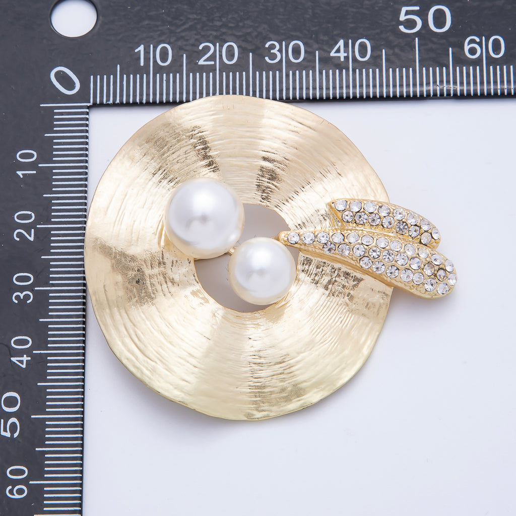 18K Gold Filled 55mm Micro Paved CZ Shell Pearl Hammered ring Brooch Pin | BH-022