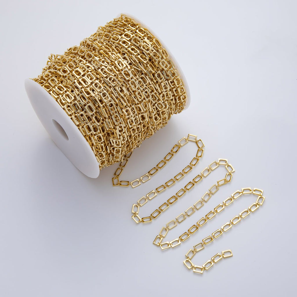 18K Gold Filled 6.5mm x 9mm Rectangular Cable Link Unfinished Chain by Yard | Roll-1779