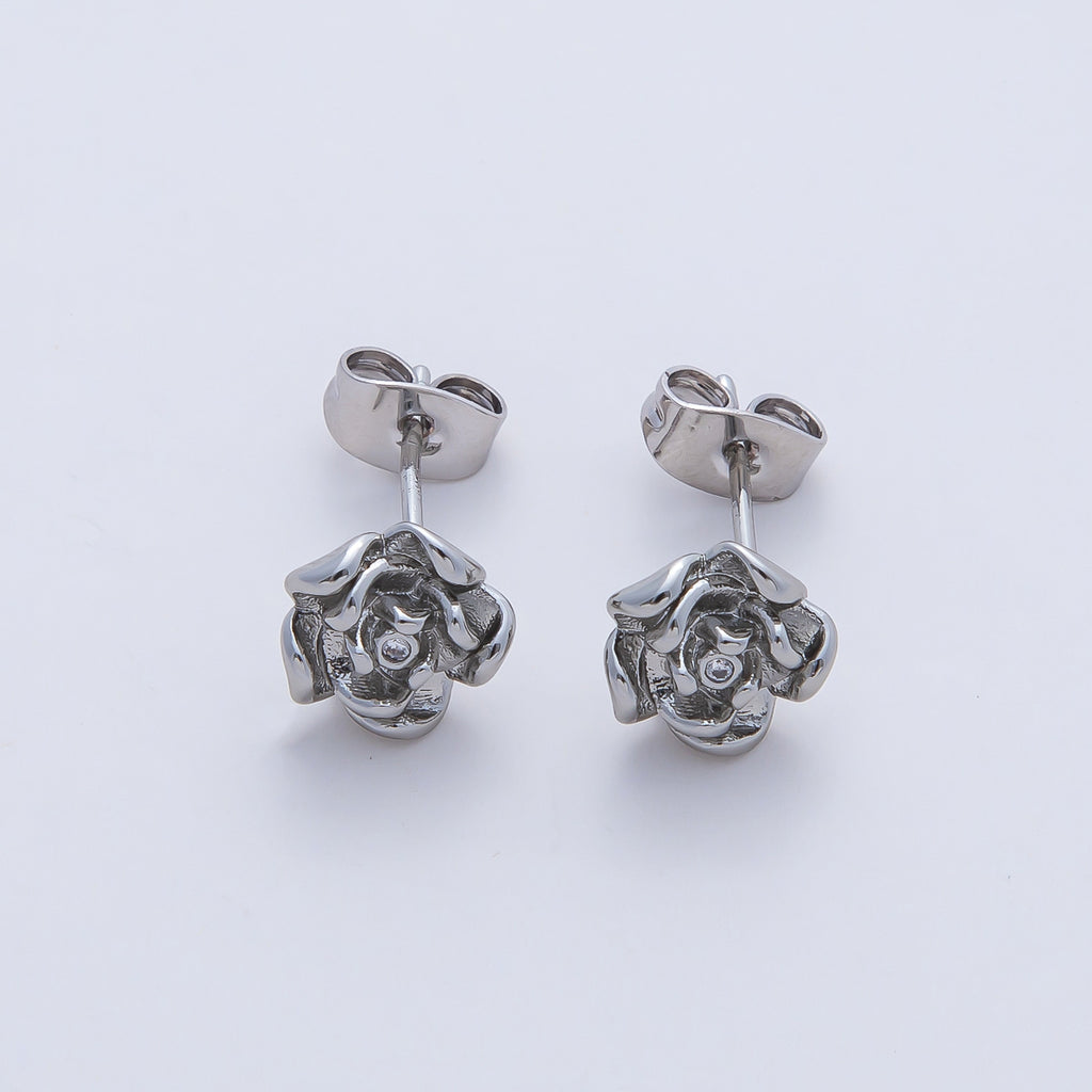 18K Gold Filled Clear CZ Rose Flower Molten Stud Earrings Findings in Gold & Silver | Z1601