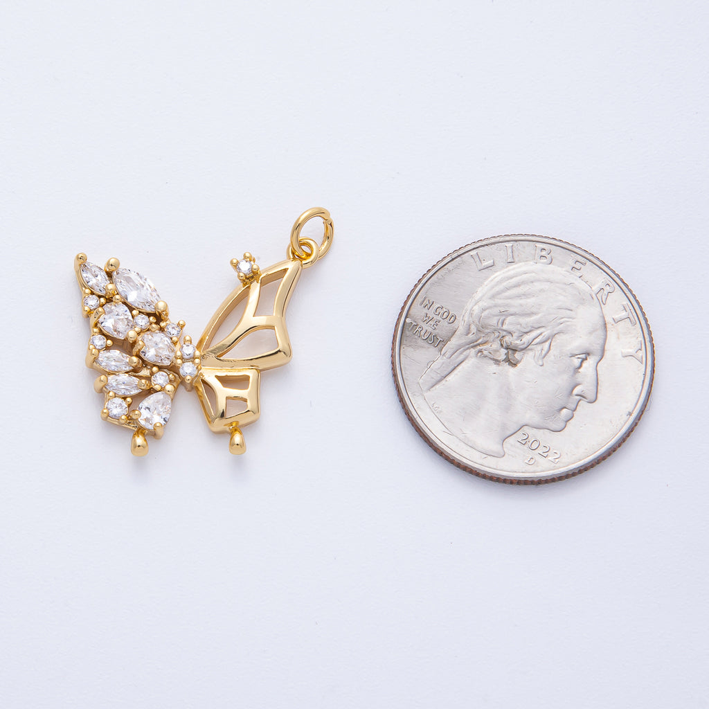 18K Gold Filled 21.5mm Clear CZ Cluster Open Butterfly Charm | AK154