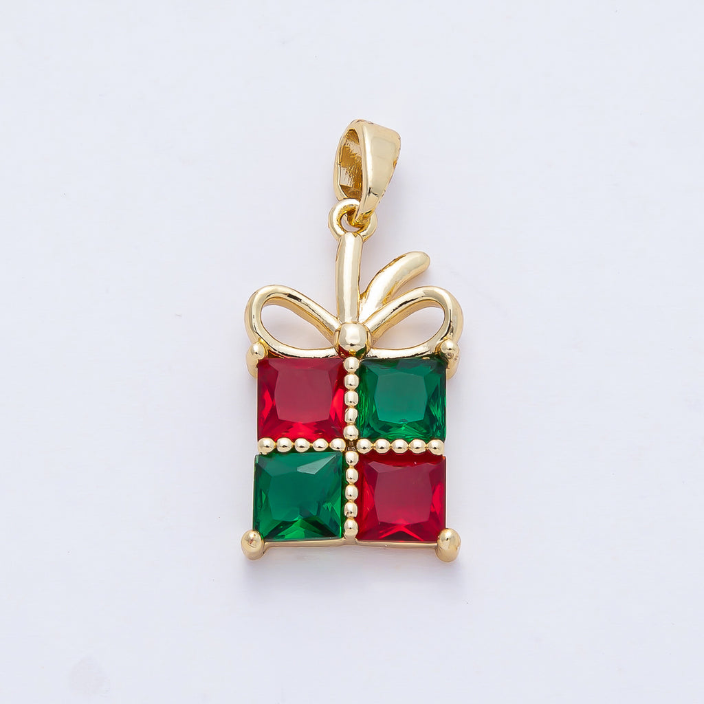 18K Gold Filled Red-Green CZ Christmas Holiday Present Pendant | AF1166