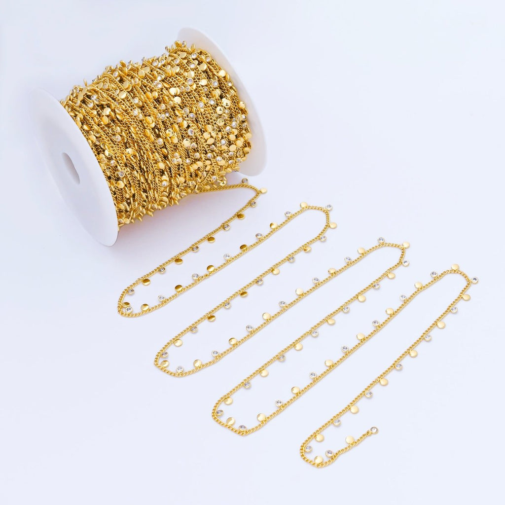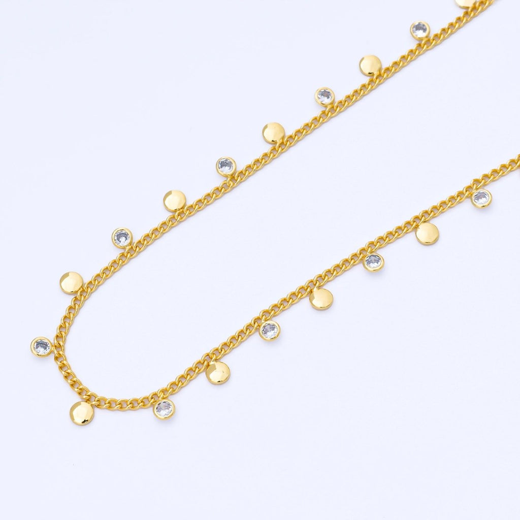 24K Gold Filled 2mm Curb Chain w. Round CZ Drop Unfinished Chain by Yard | Roll-1682