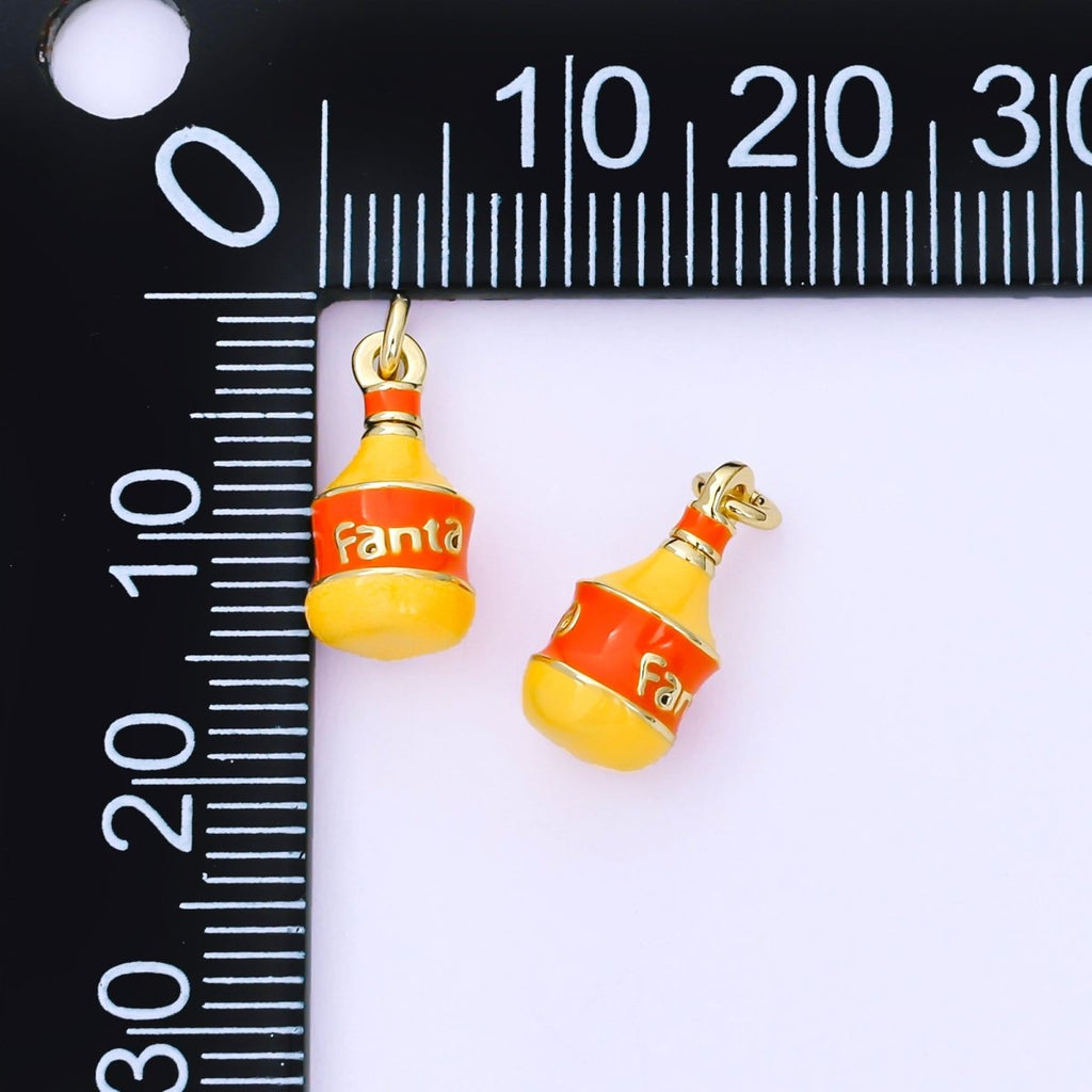 24K Gold Filled 13.5mm Enamel Orange Soda Soft Drink 3D Charm | AF1303