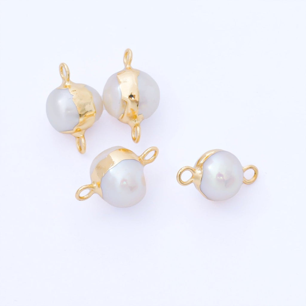 24K Gold Filled 15mm Dainty Round Shell Pearl Charm Connector | AF582