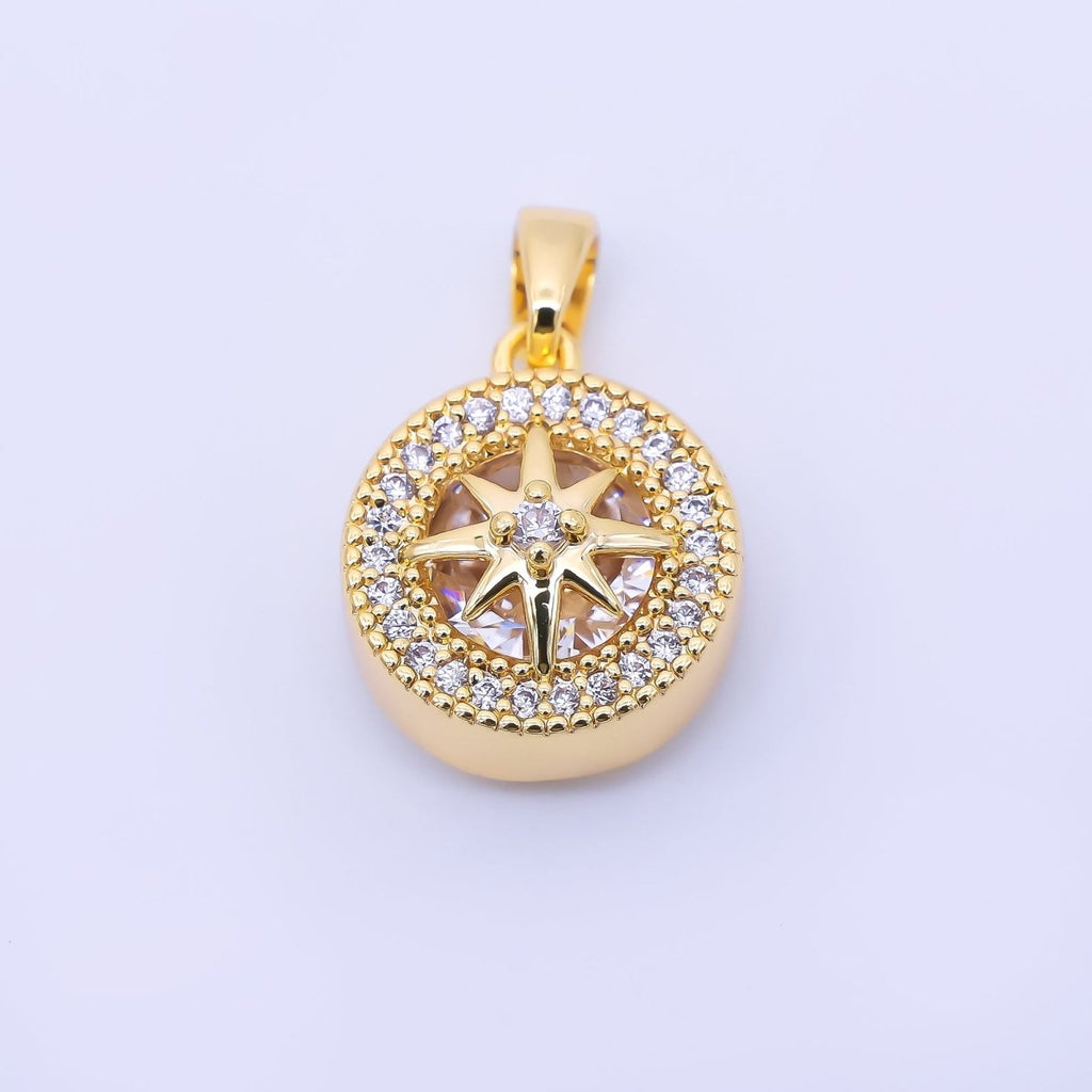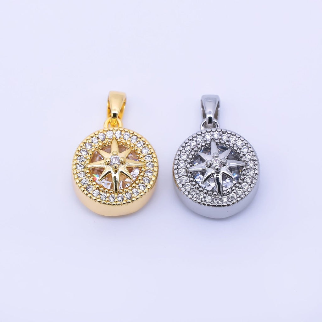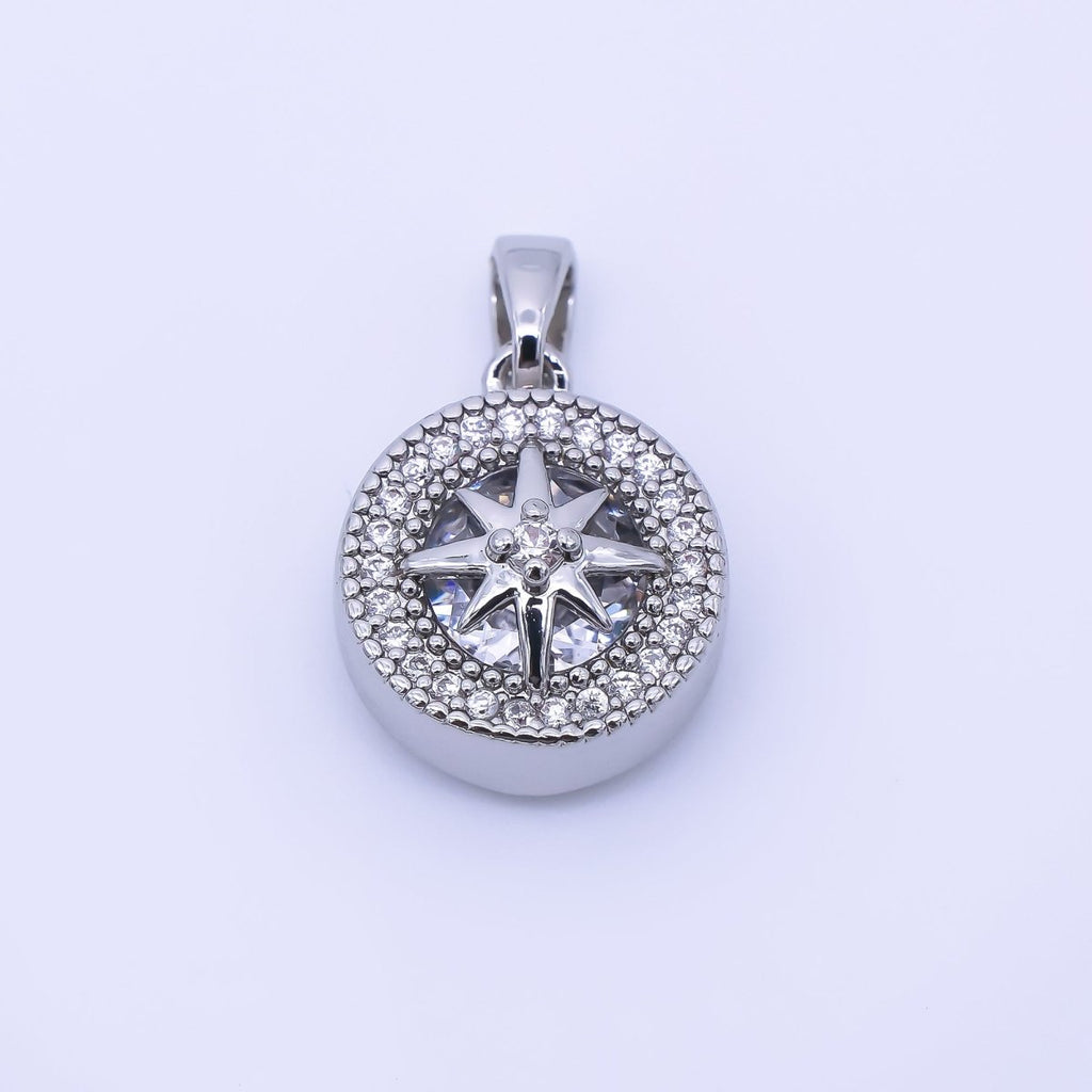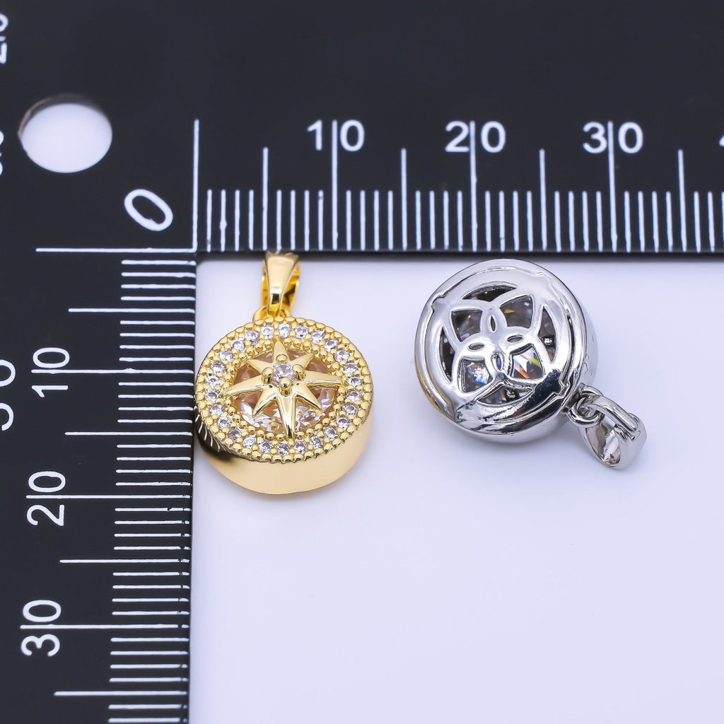 24K Gold Filled 15mm Micro Paved CZ Compass Round Pendant in Gold & Silver | AA1649