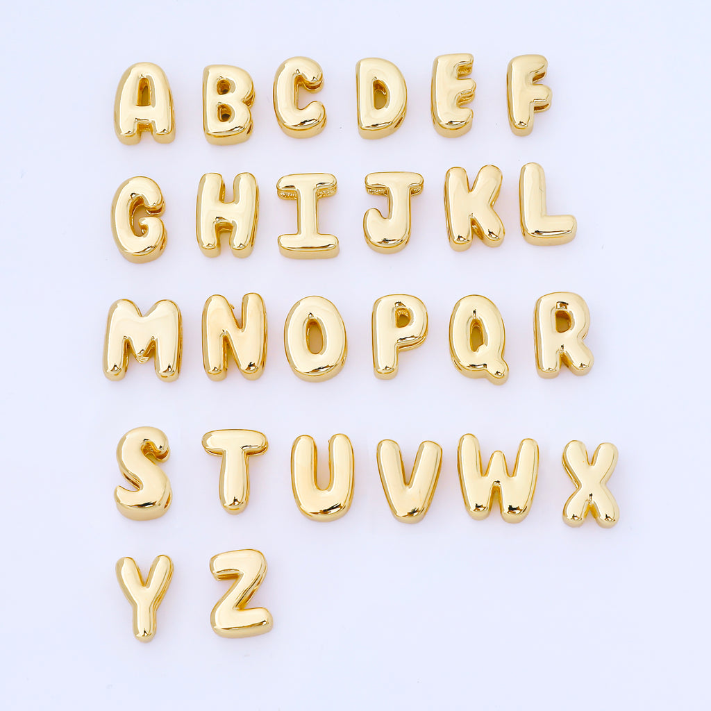 24K Gold Filled 15mm Personalized Chubby Bubble Initial Letter Alphabet Bead | AF079 - AF091