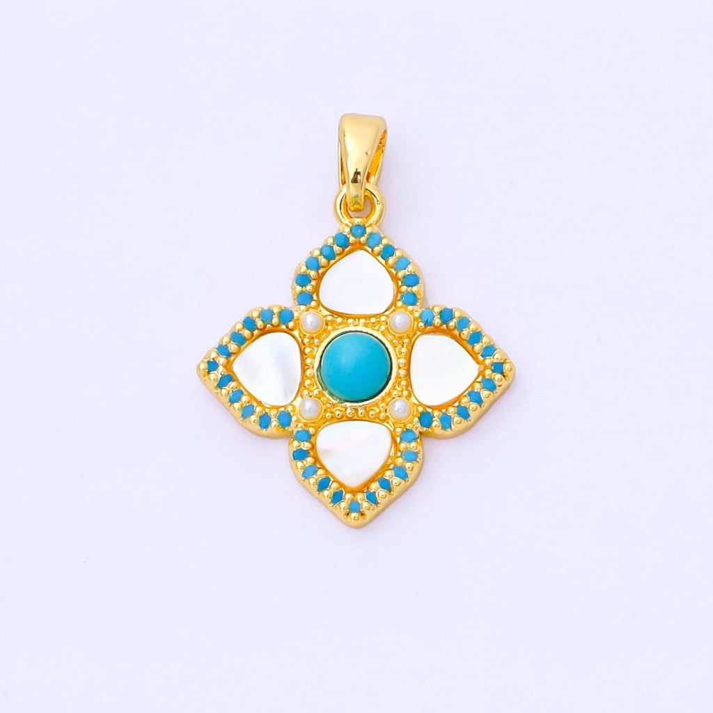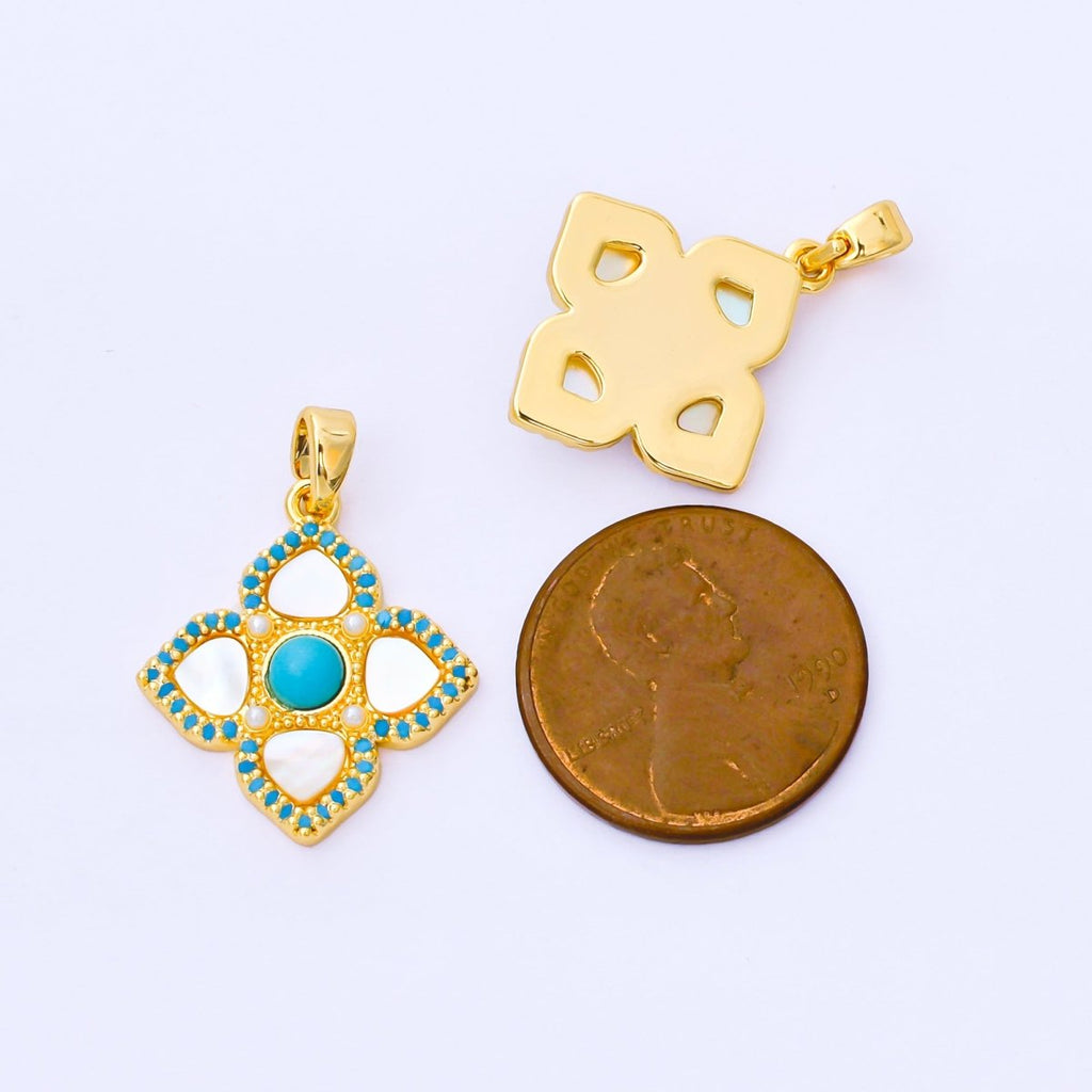 24K Gold Filled 20.5mm Blue Micro Paved CZ Mother of Pearl 4-Leaf Lucky Clover Charm | AA1650