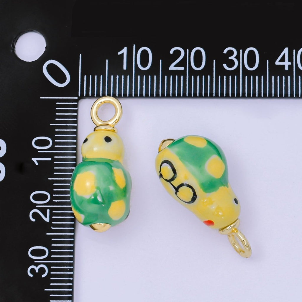 24K Gold Filled 26mm Handmade Ceramic Green Ladybug Animals Charm | AF1520