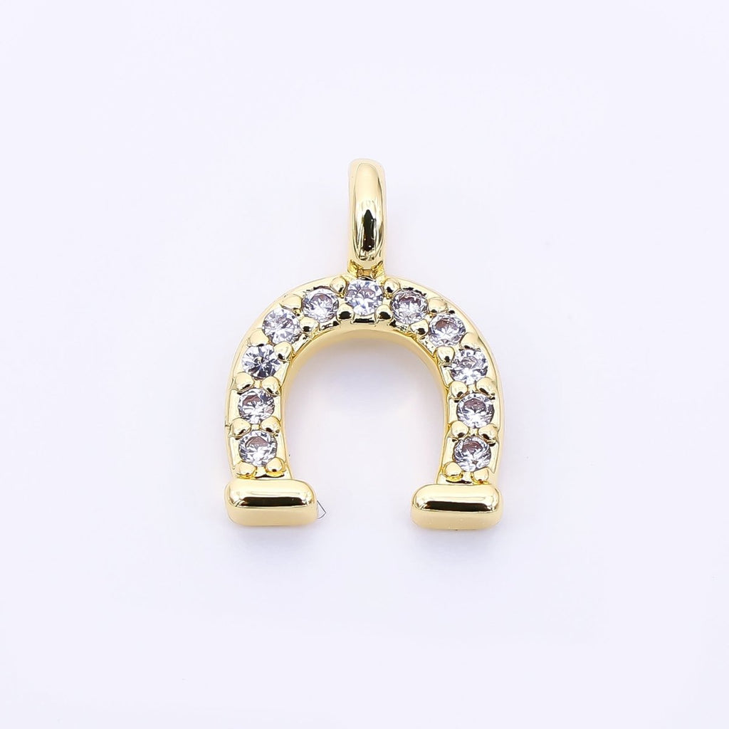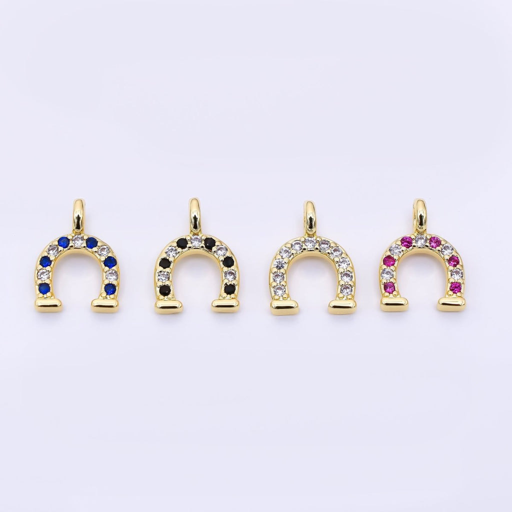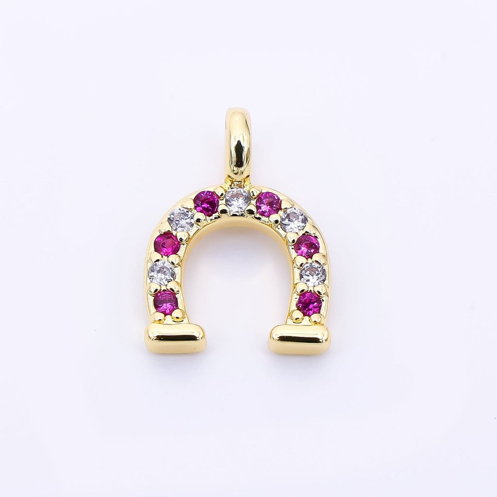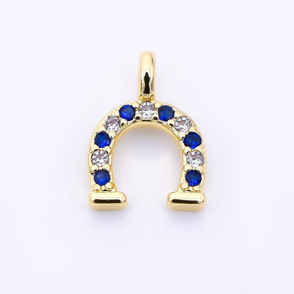 24K Gold Filled 29mm Micro Paved CZ Farm Horseshoe Animal Charm Iin Black, Pink, & Blue | AH-557 AH-558