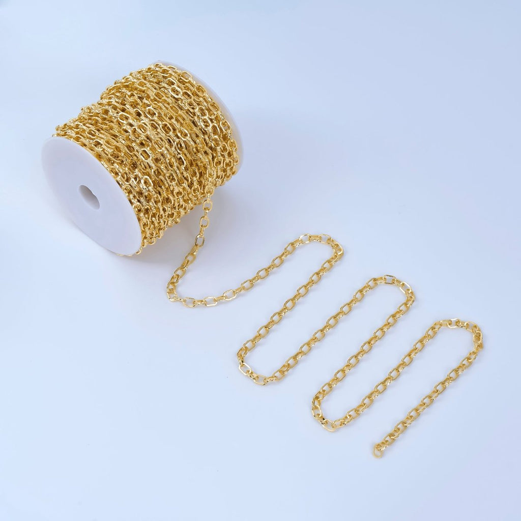 24K Gold Filled 5.4mm Hammered Textured Paperclip Unfinished Chain by Yard | ROLL-1670