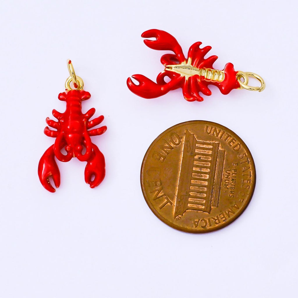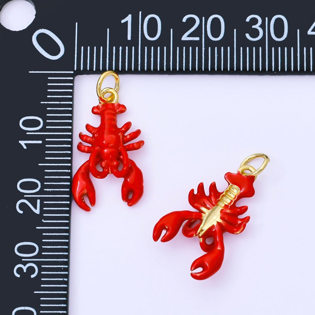 24K Gold Filled 20mm Red Enamel Seafood Crawfish Lobster Mini Charm | AF1512