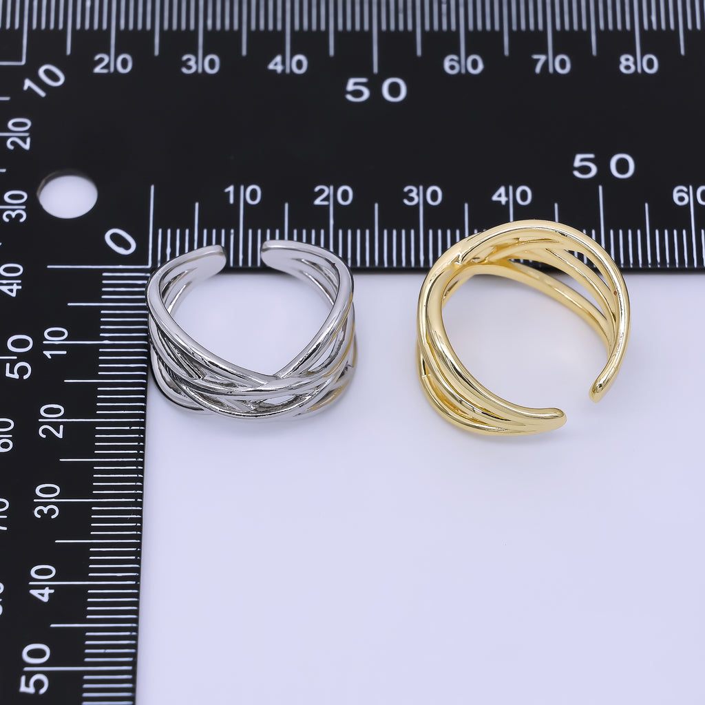 24K Gold Filled Intertwined Lines Crossing Ring in Gold & Silver | O1628 O1631