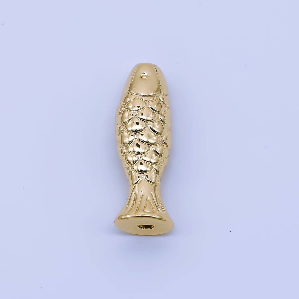 24K Gold Filled Minimalist Textured Fish Beach Bead | B485