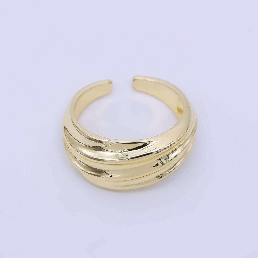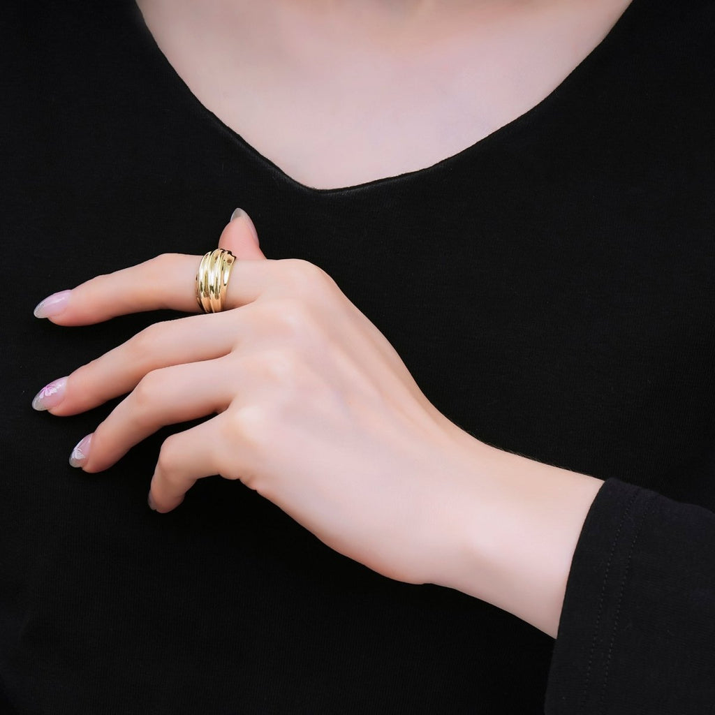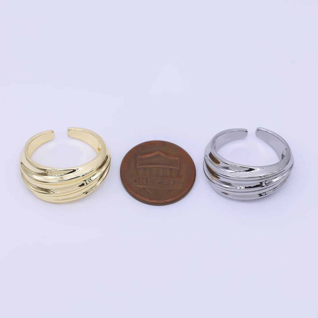 24K Gold Filled Stripes Textured Dome Ring in Gold & Silver | O1632 O1639