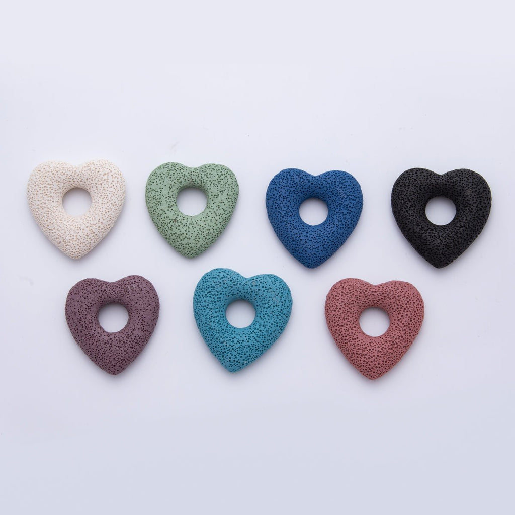 53mm Black, Blue, Green Textured Lava Stone Heart Lovely Finding | Z1470 ~ Z1473