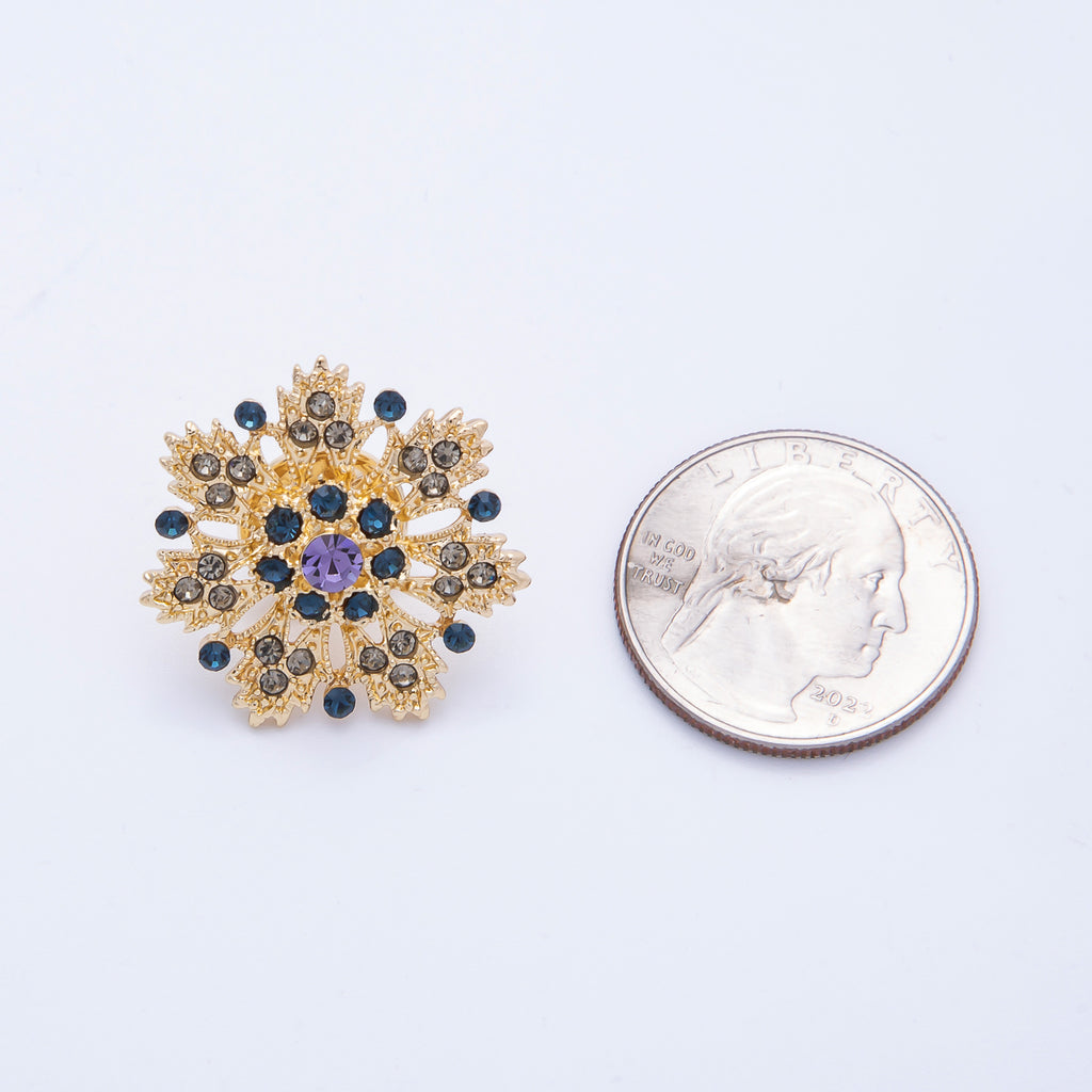 Gold Rhinestone Geometric Snowflake Pin Brooch | BH-042