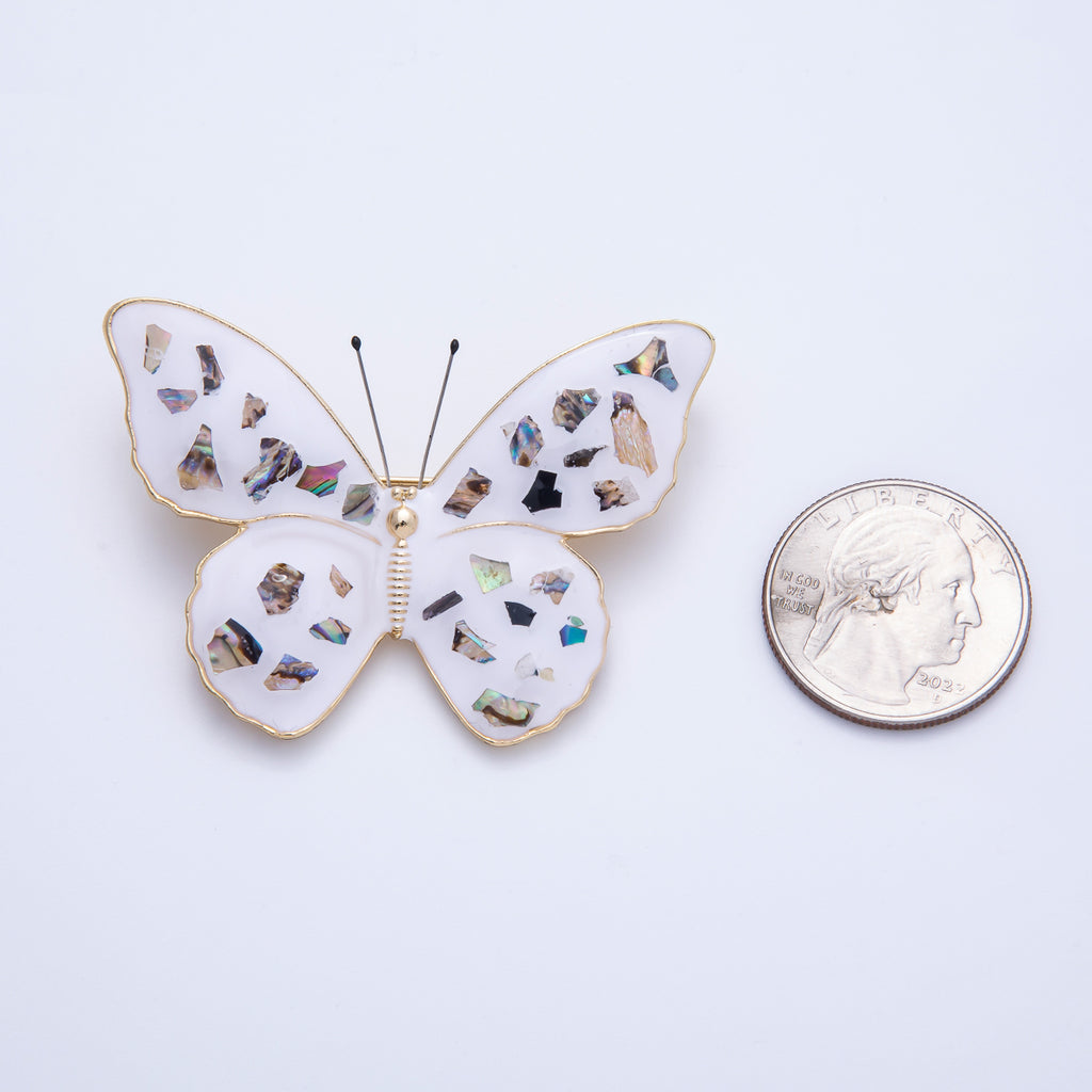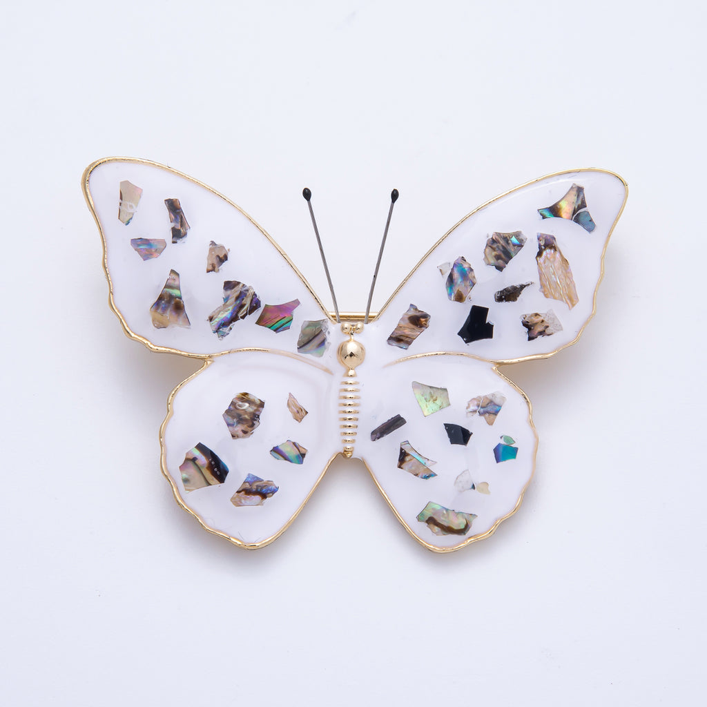 Gold 55mm White Butterfly Insect Animal Pin Brooch | BH-037