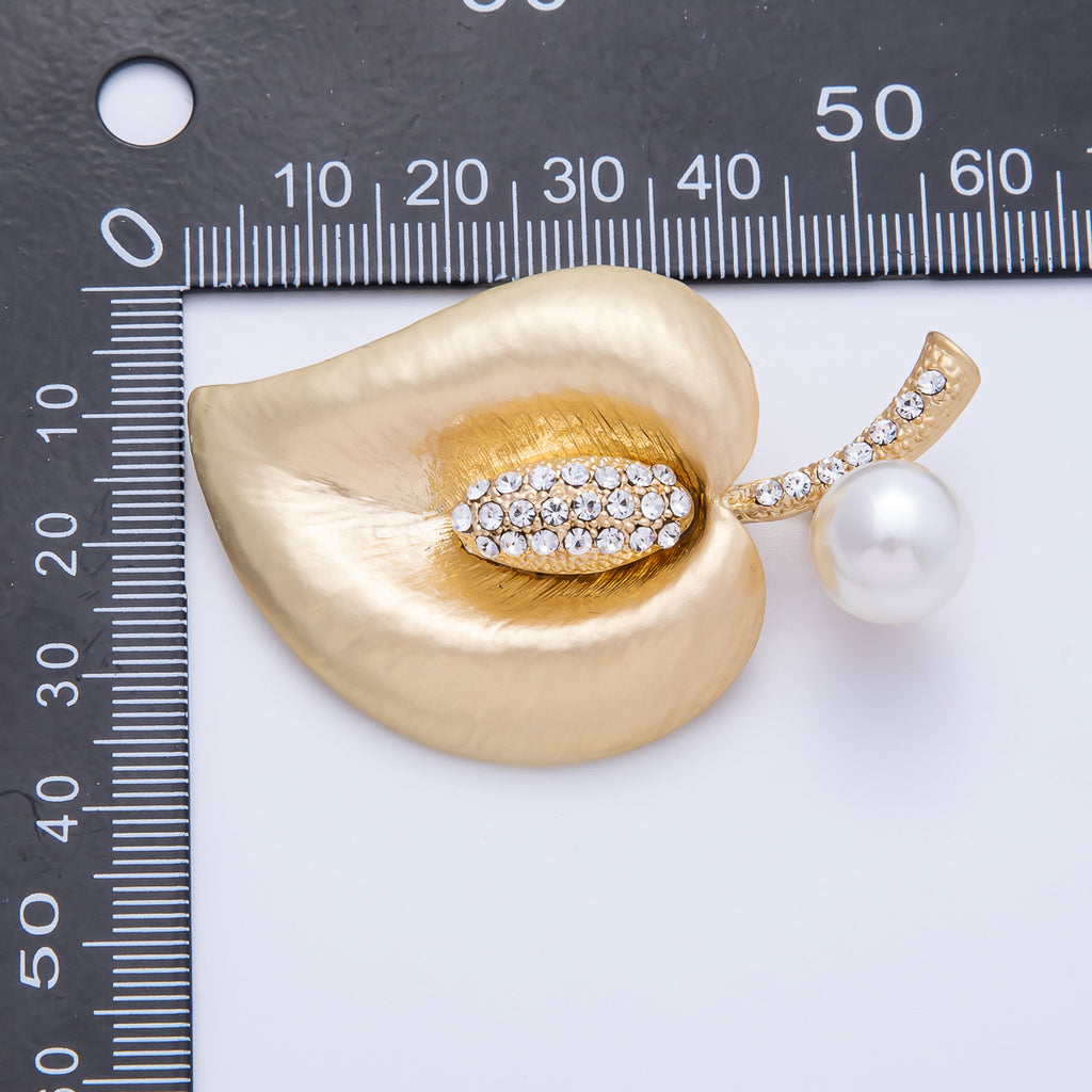 Matte Gold 58mm x 36mm Acrylic Pearl Leaf Nature Pin Brooch | BH-035