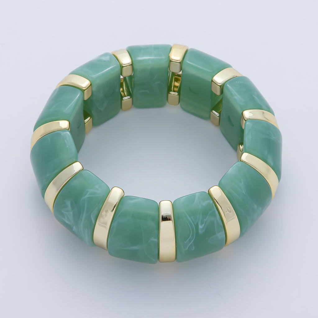 57mm Gold-Lined Resin Gemstone Stretch Bangle Bracelet | WA-920
