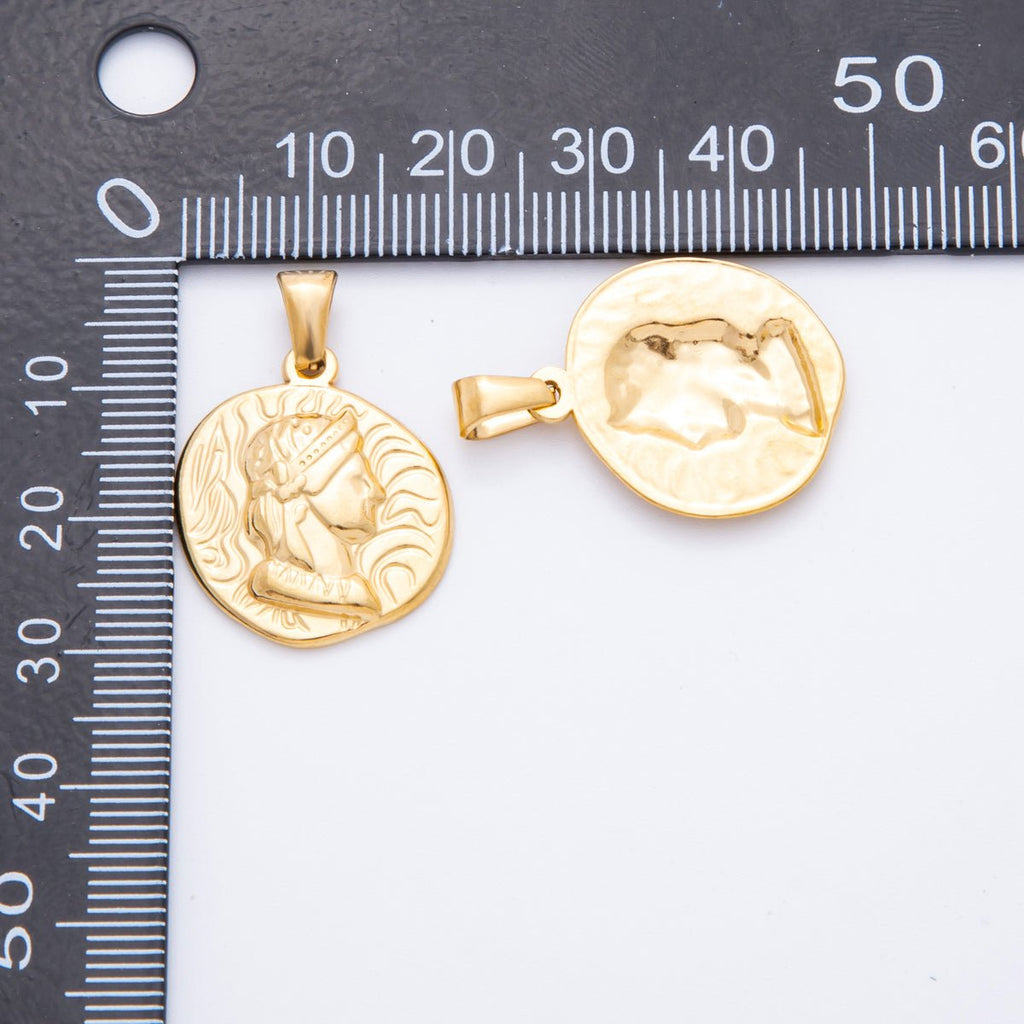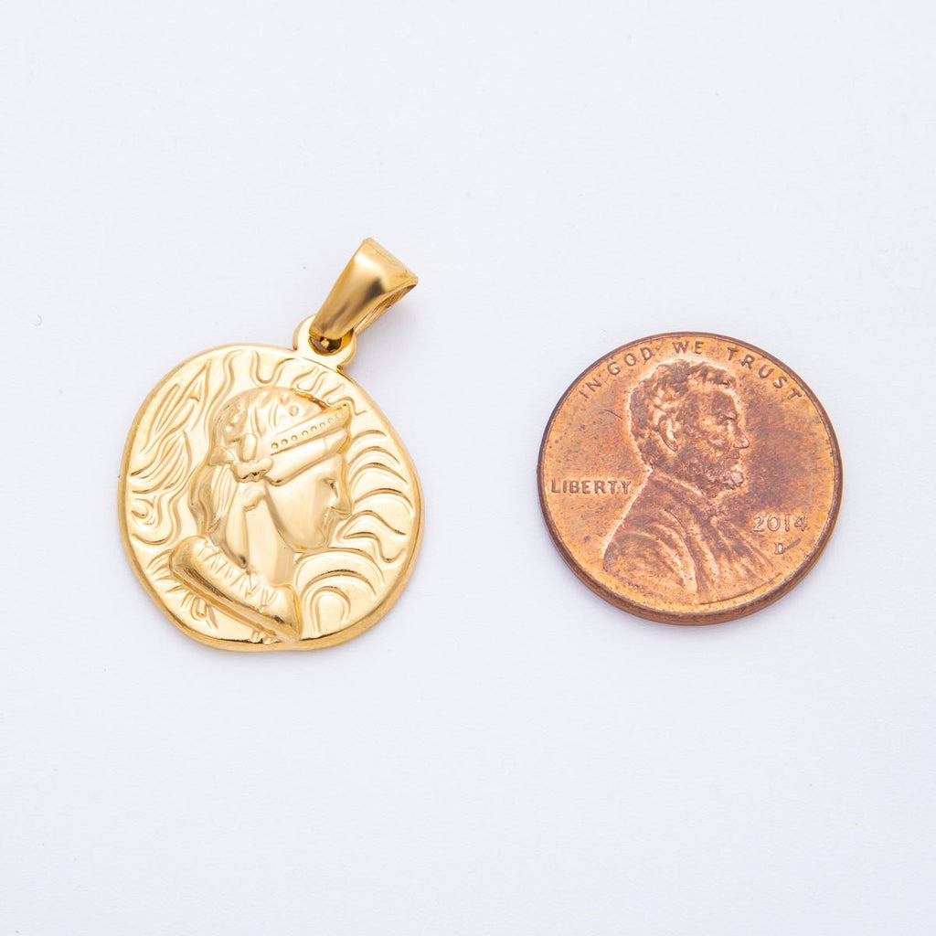 Stainless Steel 28mm Athens King Textured Round Pendant Charm | J550