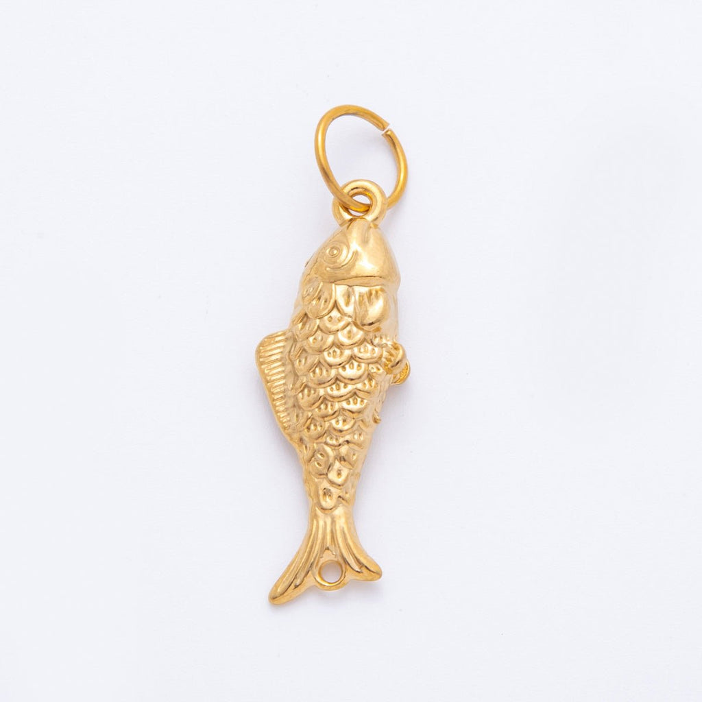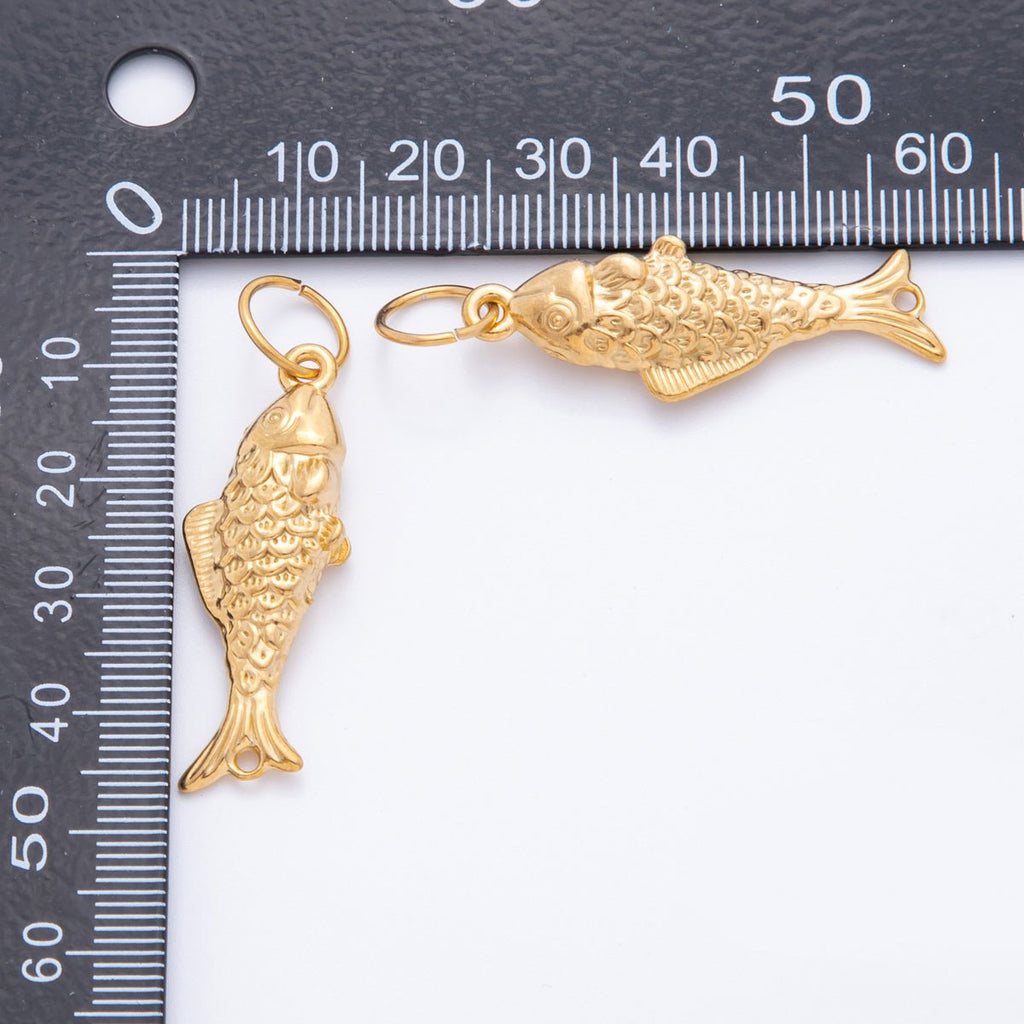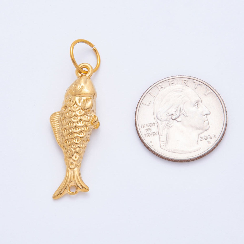 Stainless Steel 45mm Textured Multidimensional Fish Charm Pendant| J595
