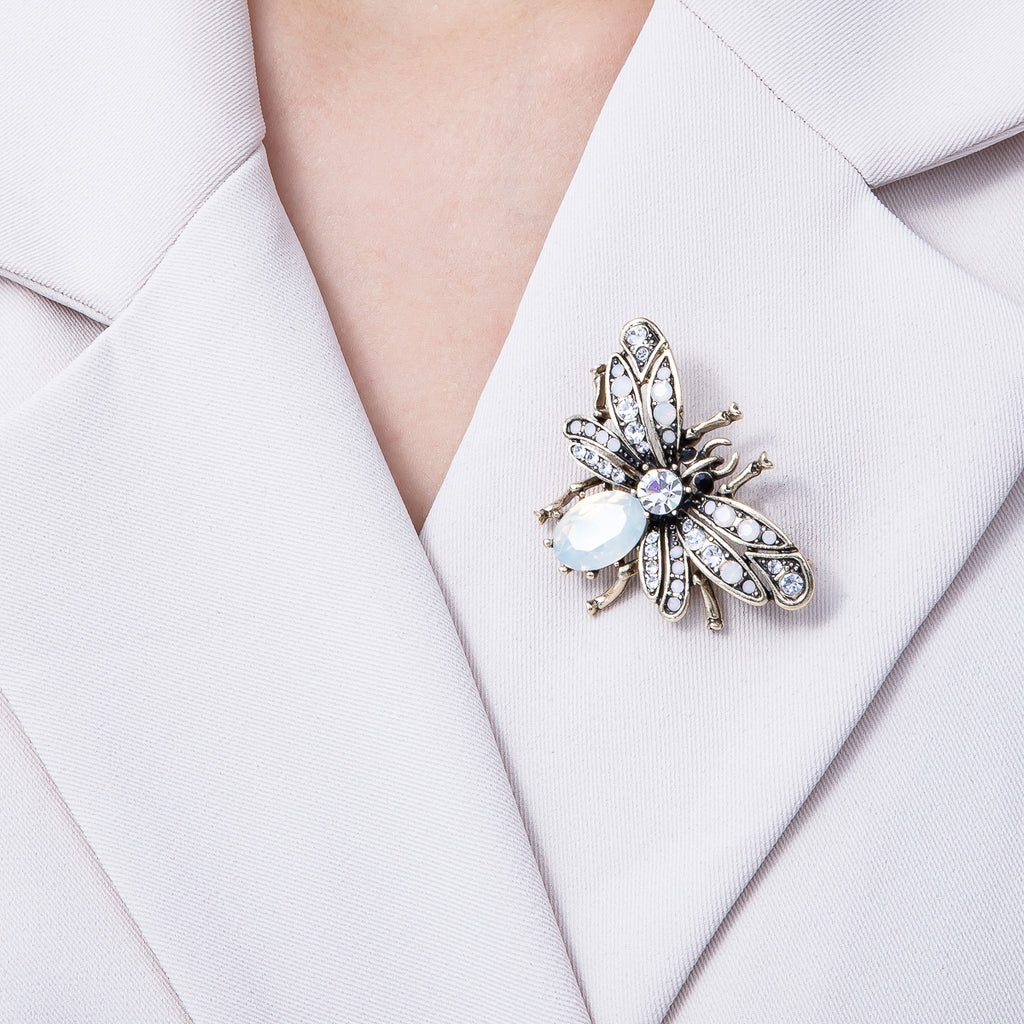 Vintage Silver 47.3mm x 33.5mm CZ Fly Insect Pin Brooch | BH-020