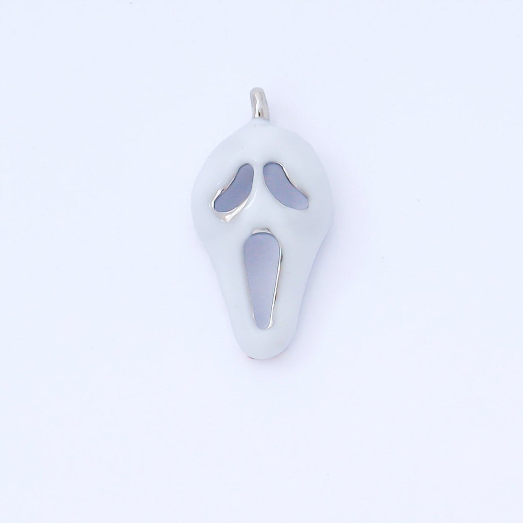 White Enamel Gold Scream Movie Mask, Scary, Halloween, Horror 24K Gold Filled Charm Findings Pendant For Jewelry Making AF-1540