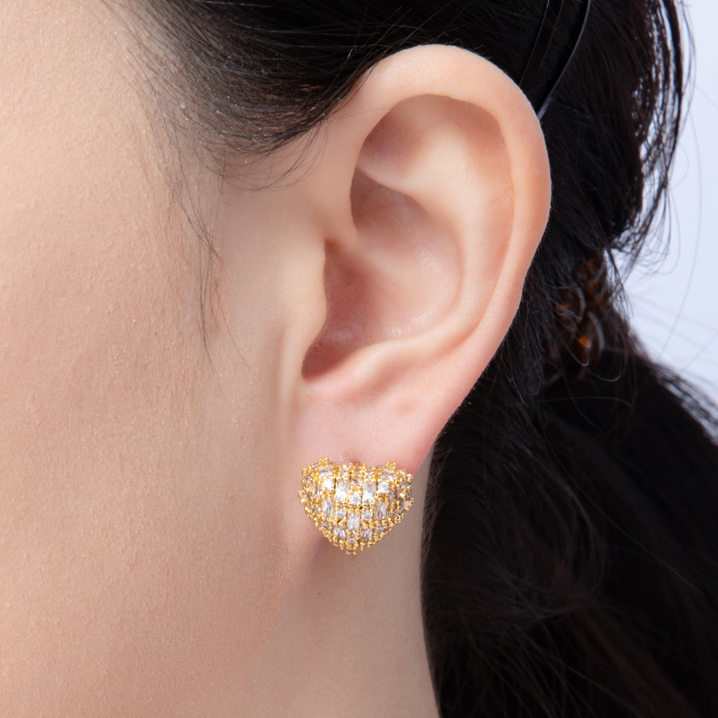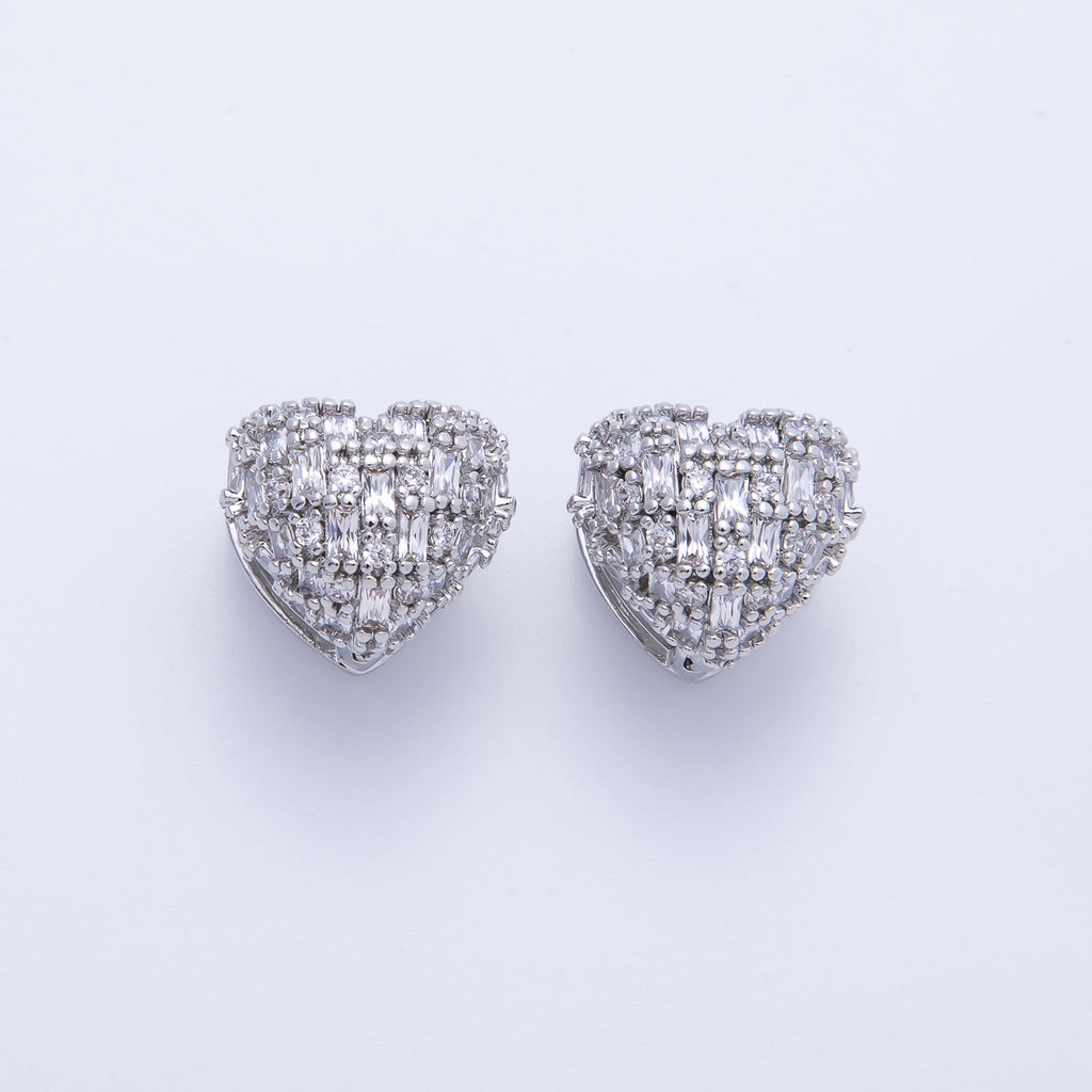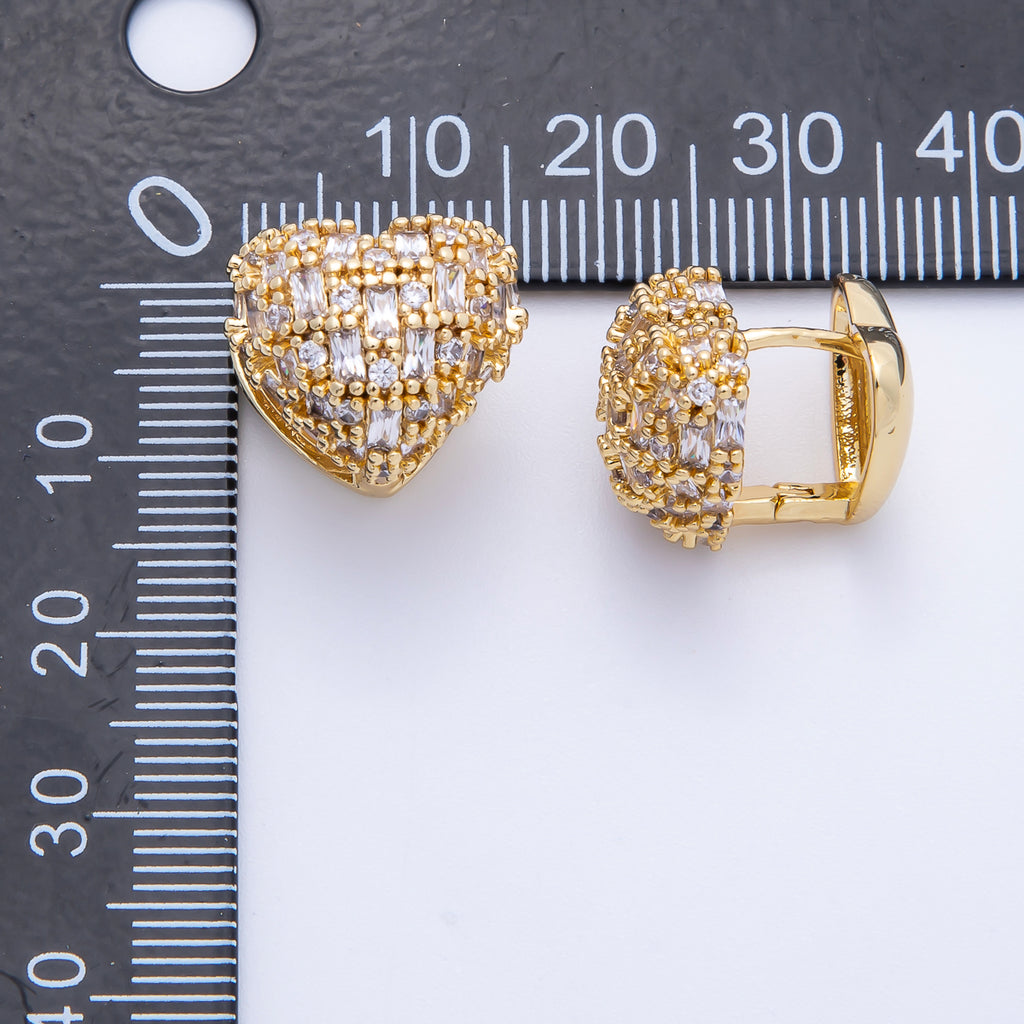 14K Gold Filled 14mm Clear CZ Baguette Heart Huggie Earring in Gold & Silver | Earr-020018 Earr-020019
