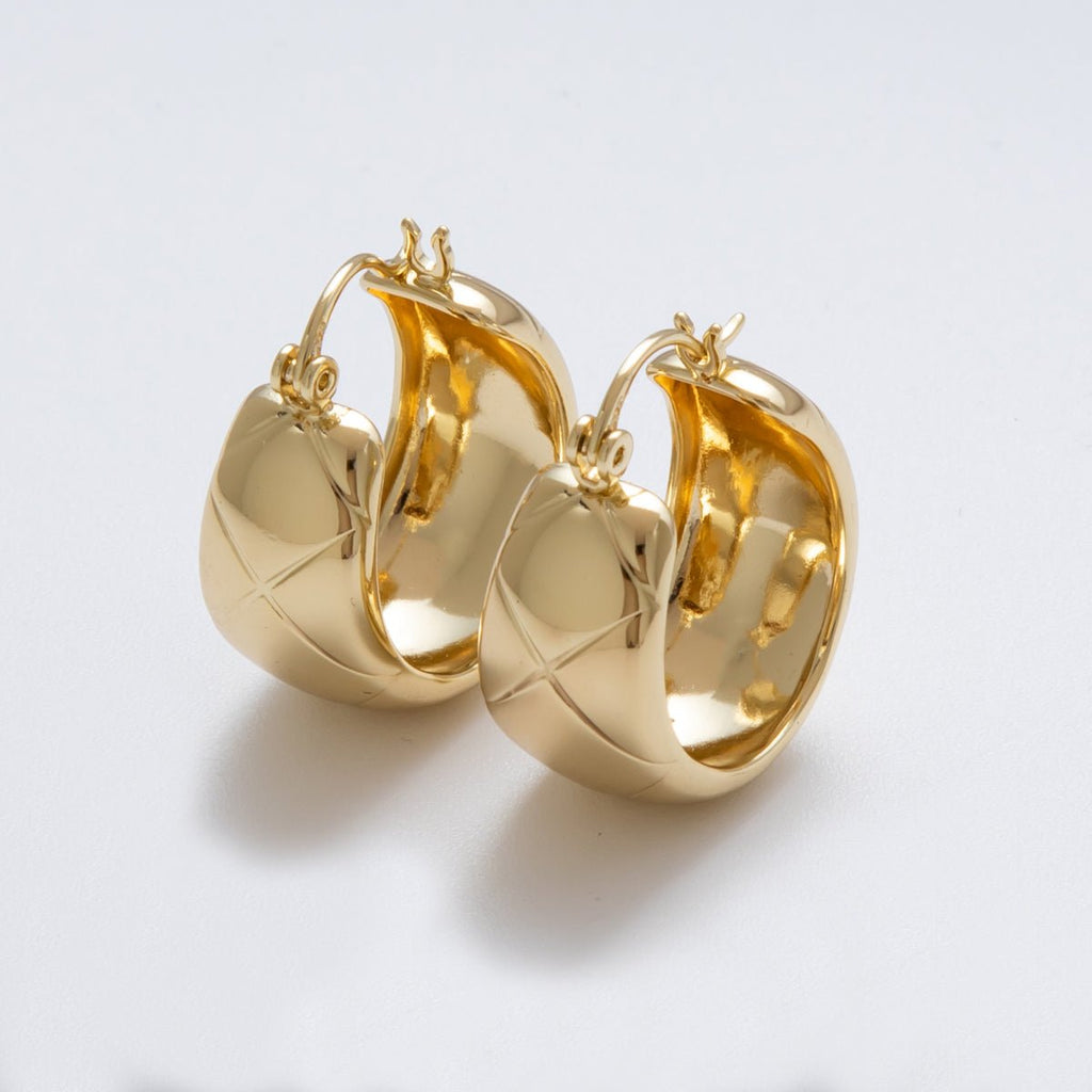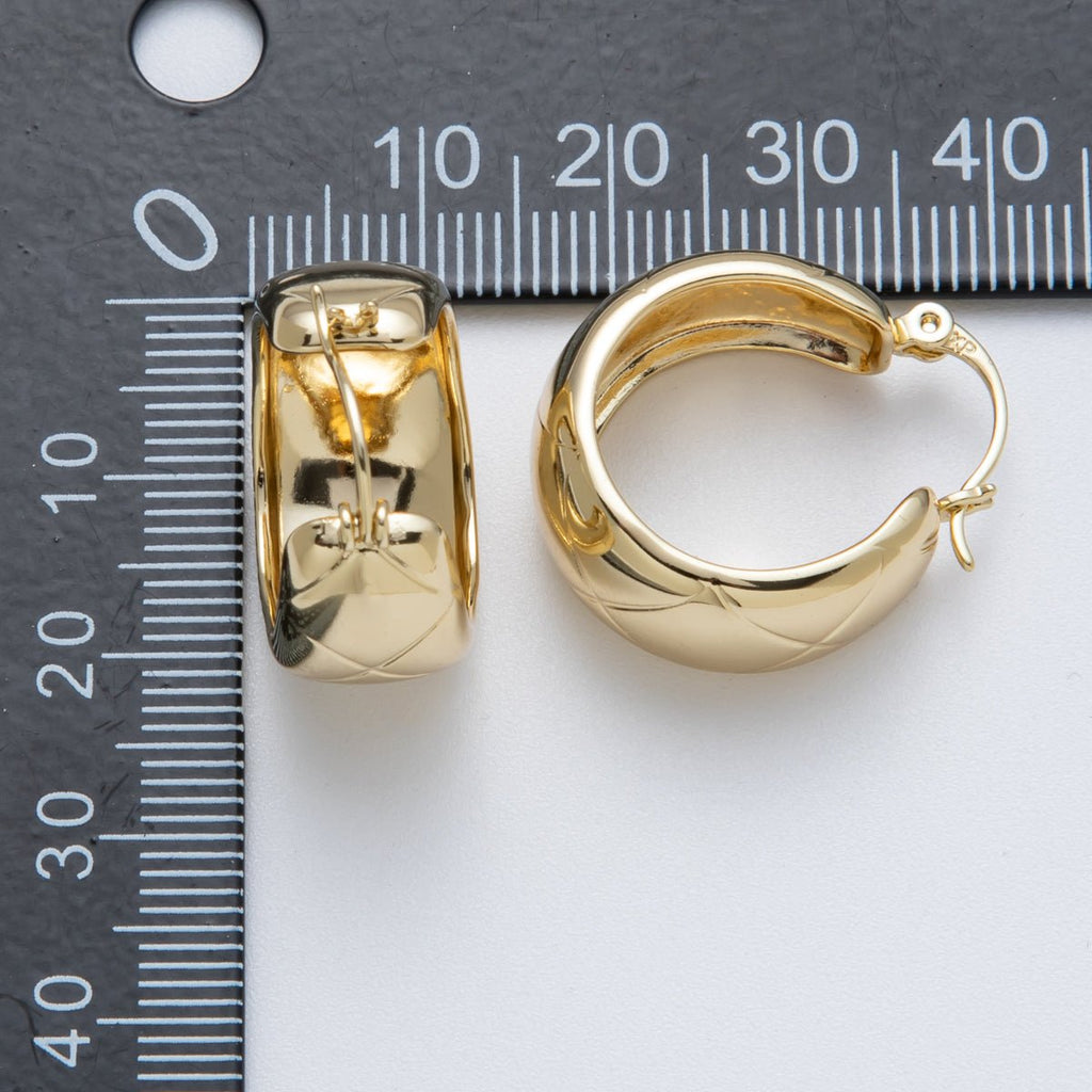 14K Gold Filled 25.5mm Wide Quilted Latch Hoop Earrings | Earrings-00132