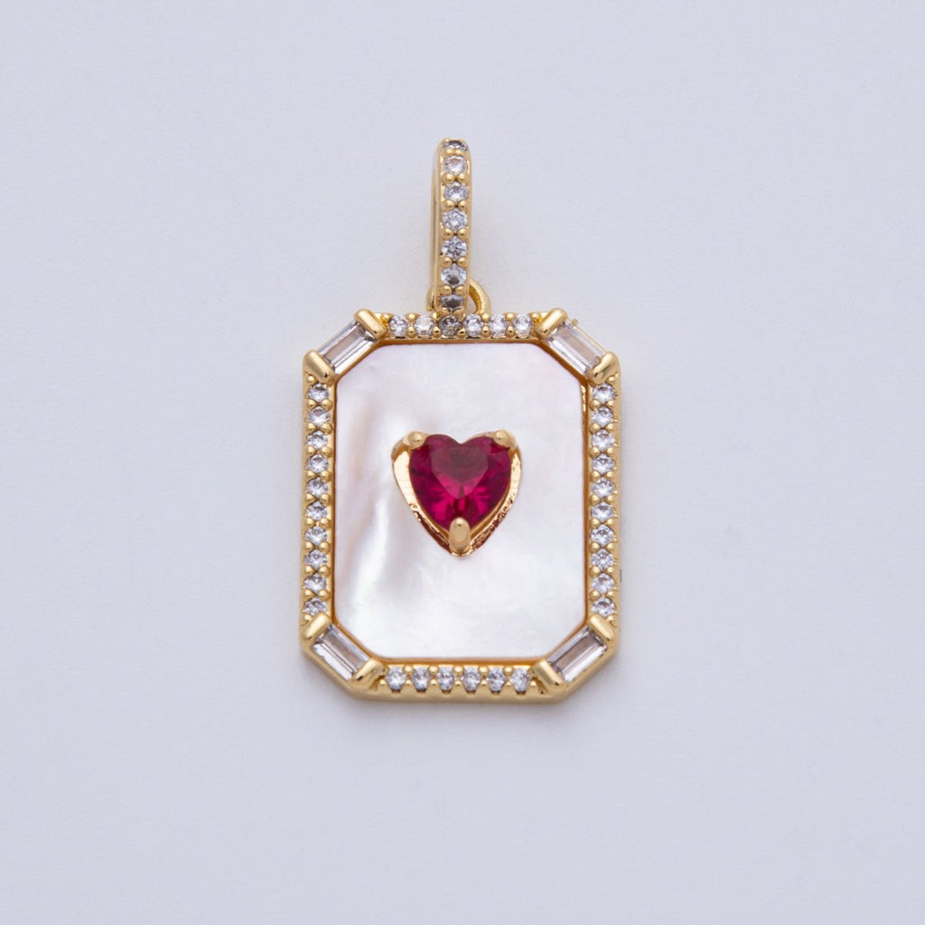 16K Gold Filled 21.5mm Red CZ Shell Pearl Rectangular Pendant | Charms-00167