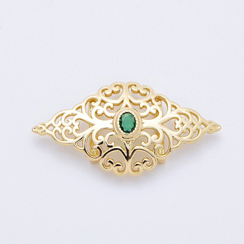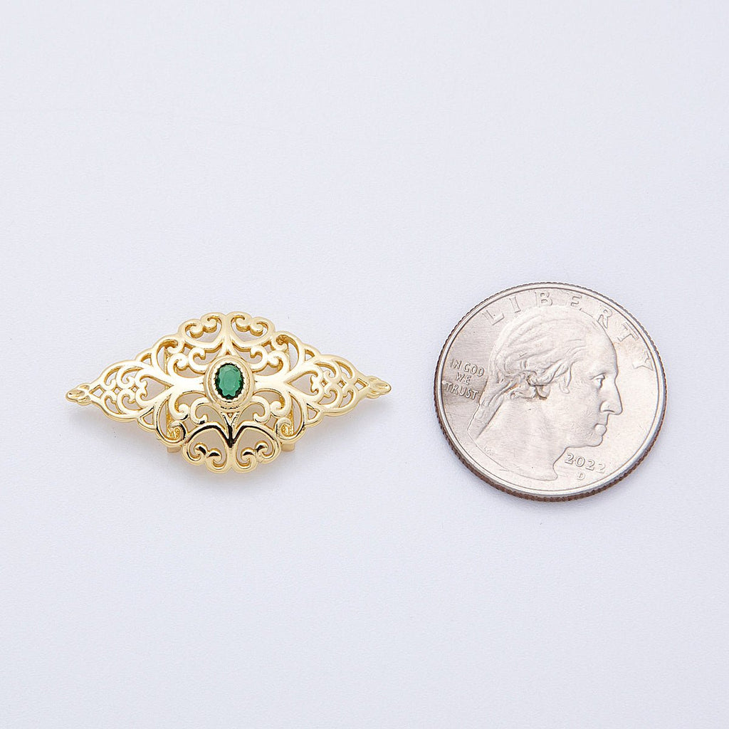 16K Gold Filled 34mm Green CZ Oval Filigree Geometric Charm Finding | Findings-00036