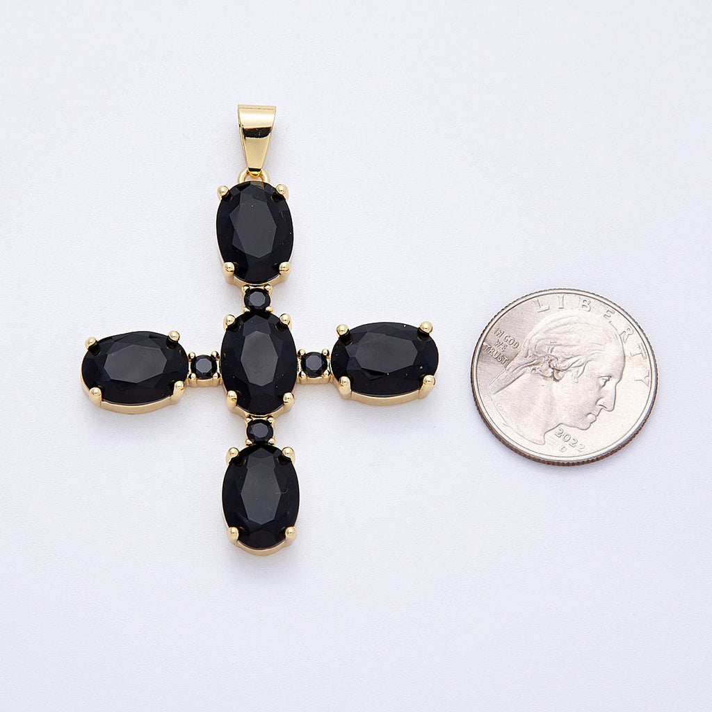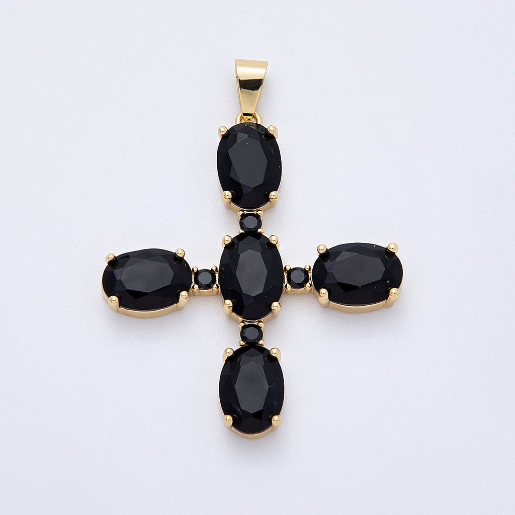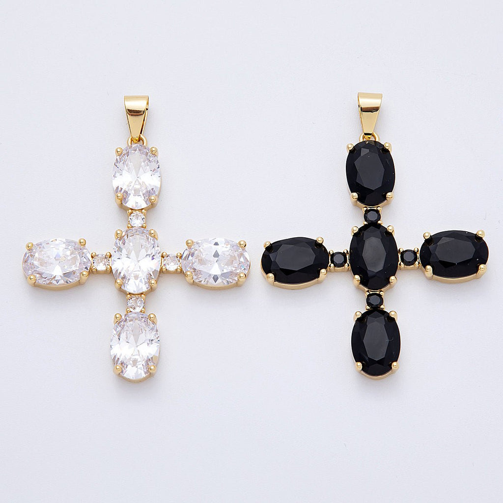 16K Gold Filled 53mm Clear, Black CZ Religious Pendant | Charms-00162 - Charms-00163