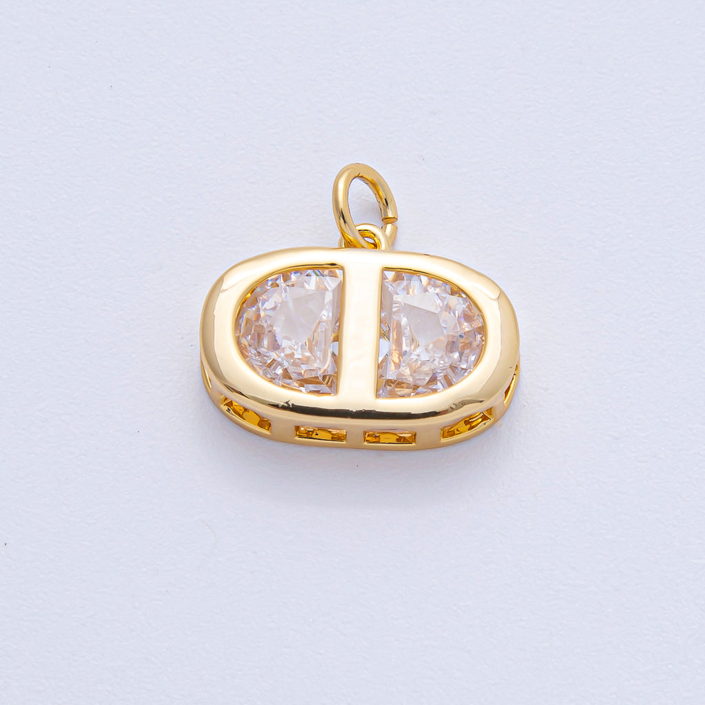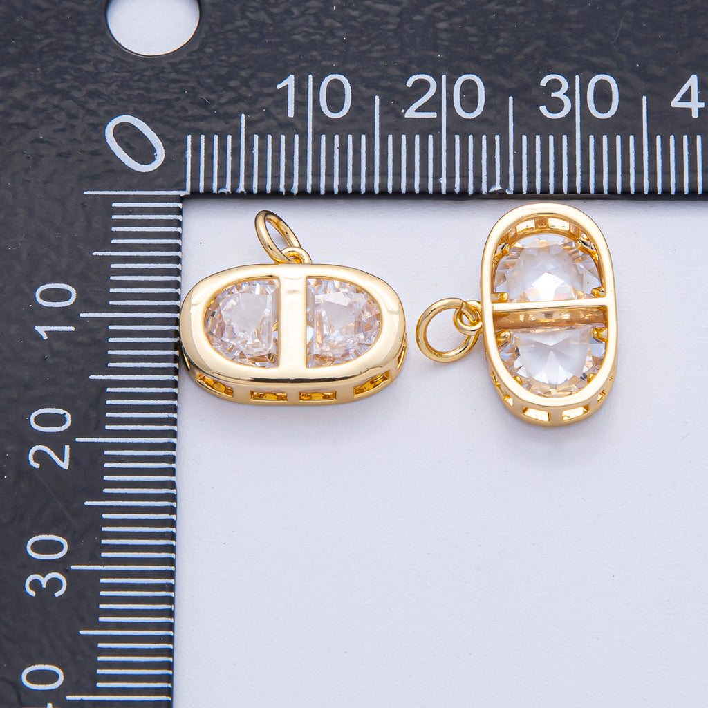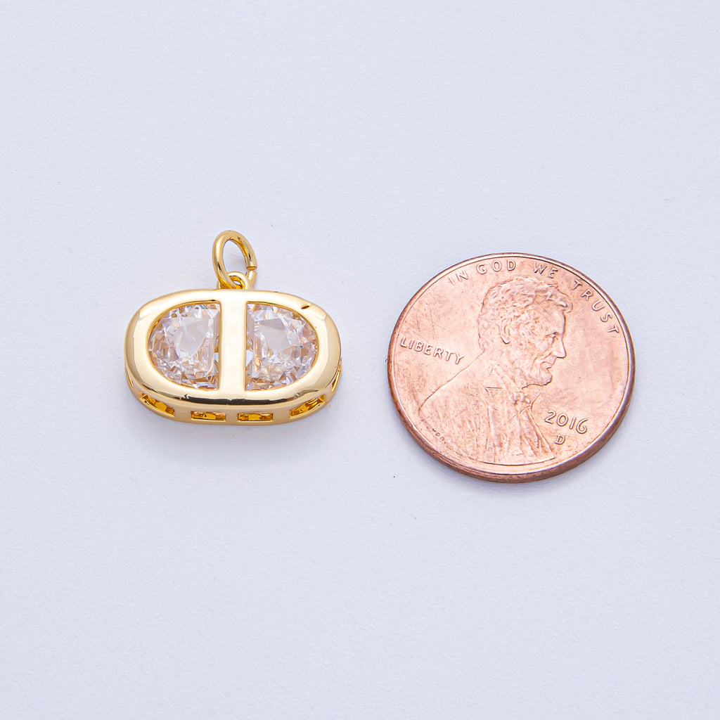 18K Gold Filled 16.5mm Clear CZ Oval Mariner Anchor Charm | AK039