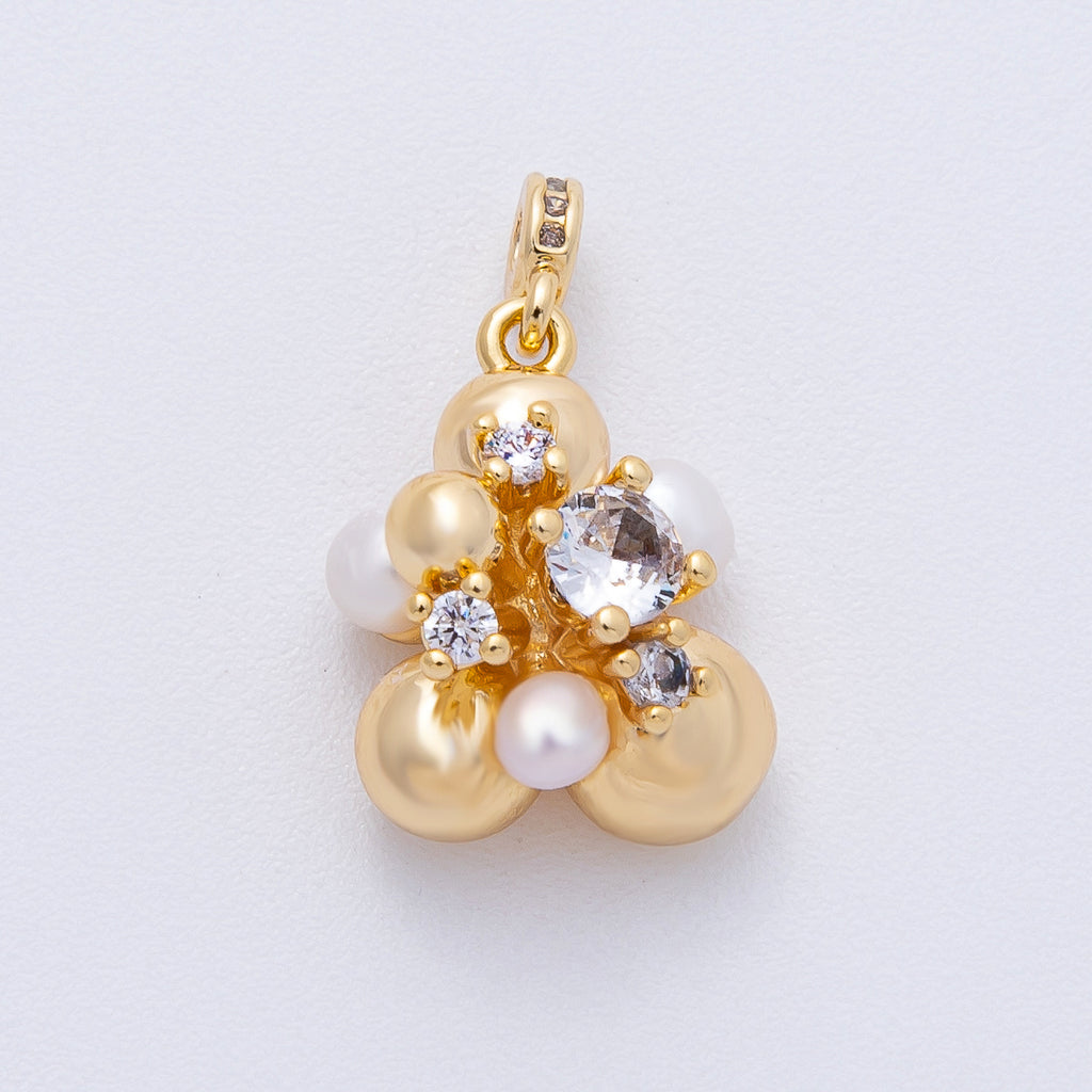18K Gold Filled 16mm Geometric Bubble Shell Pearl Micro Paved CZ Charm | AK114