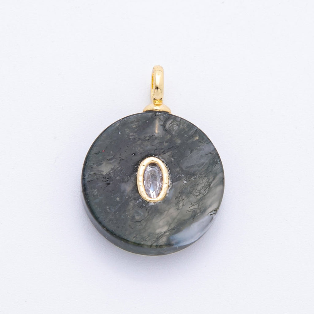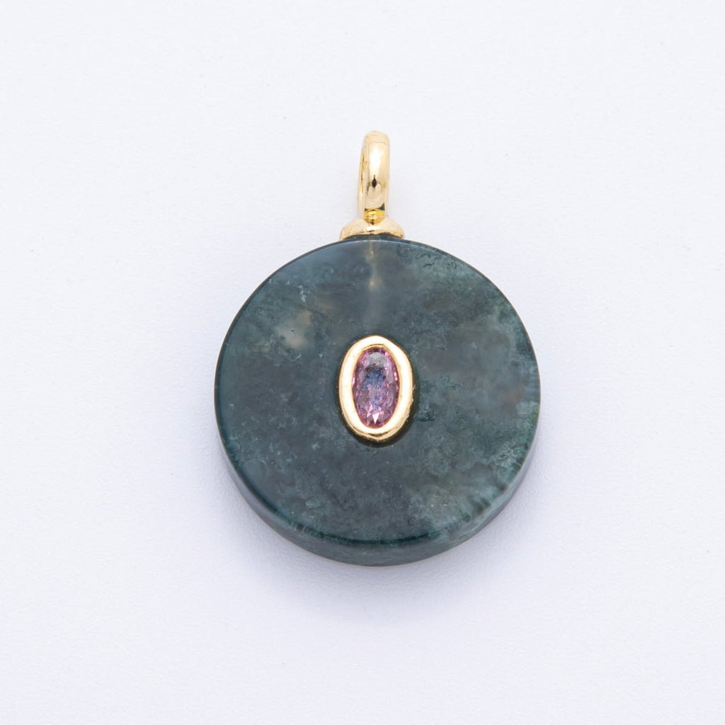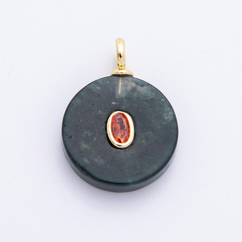 18K Gold Filled Clear, Pink, Red-Orange, Yellow CZ Moss Agate Round Pendant | N968 N966