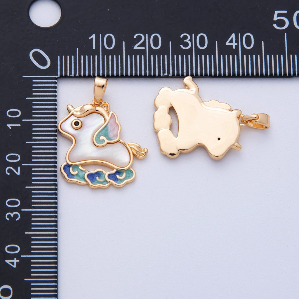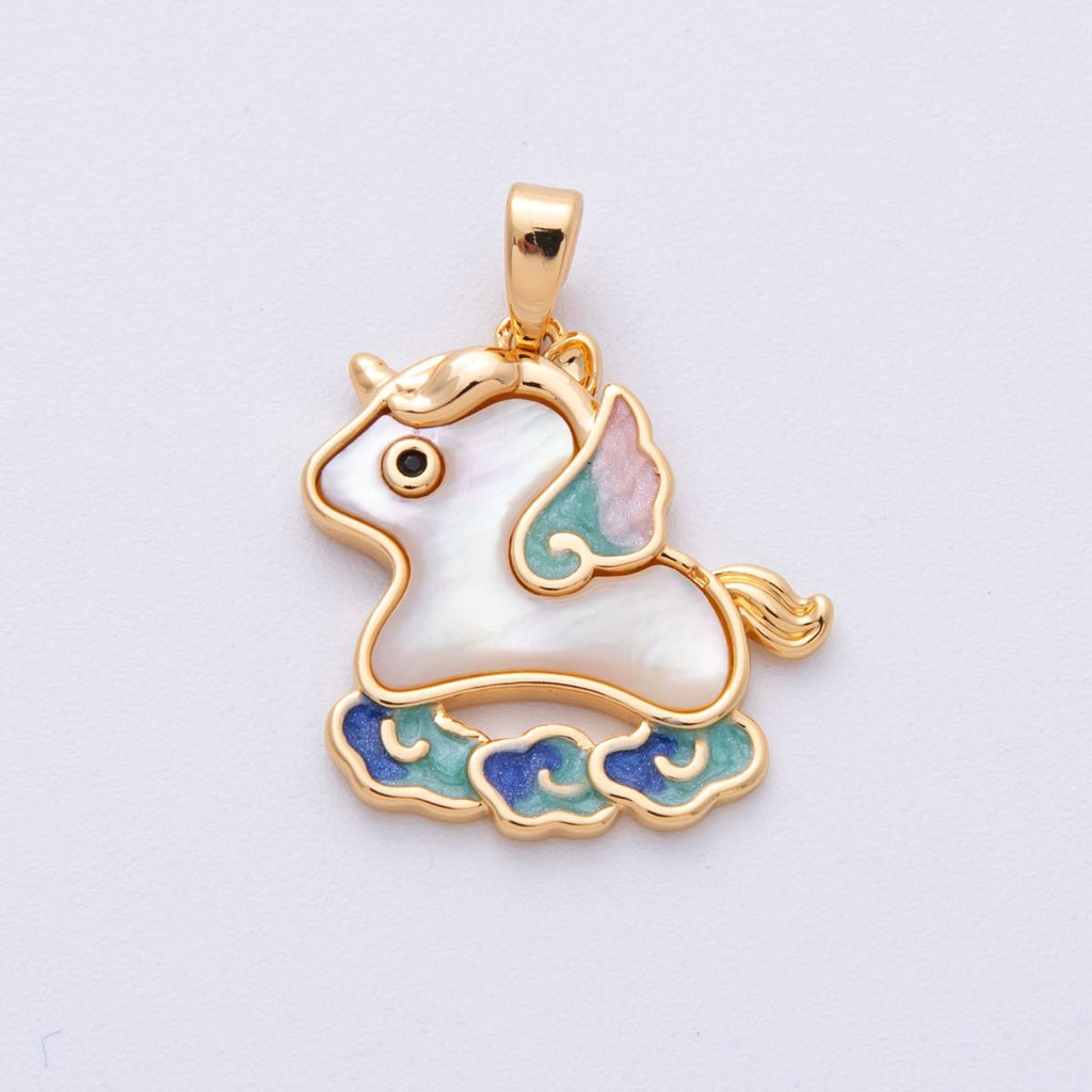 18K Gold Filled 20mm Shell Pearl Unicorn Pegasus Animal Pendant | Charms-00095