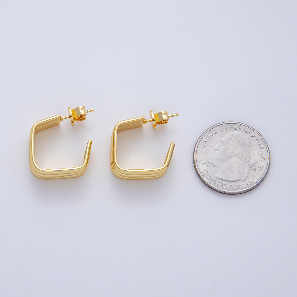 18K Gold Filled 20mm Triple Band Square C-Shaped Hoop Earrings | AD1644