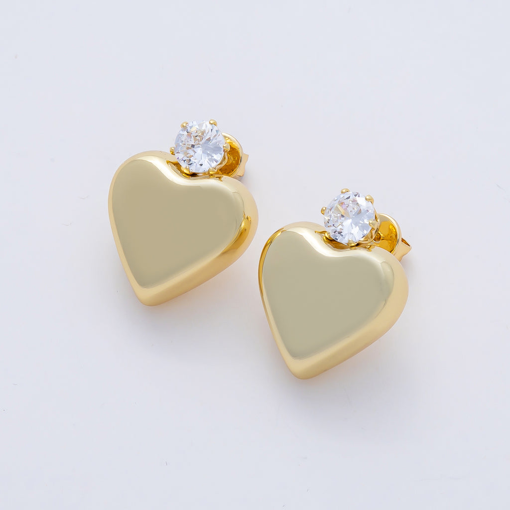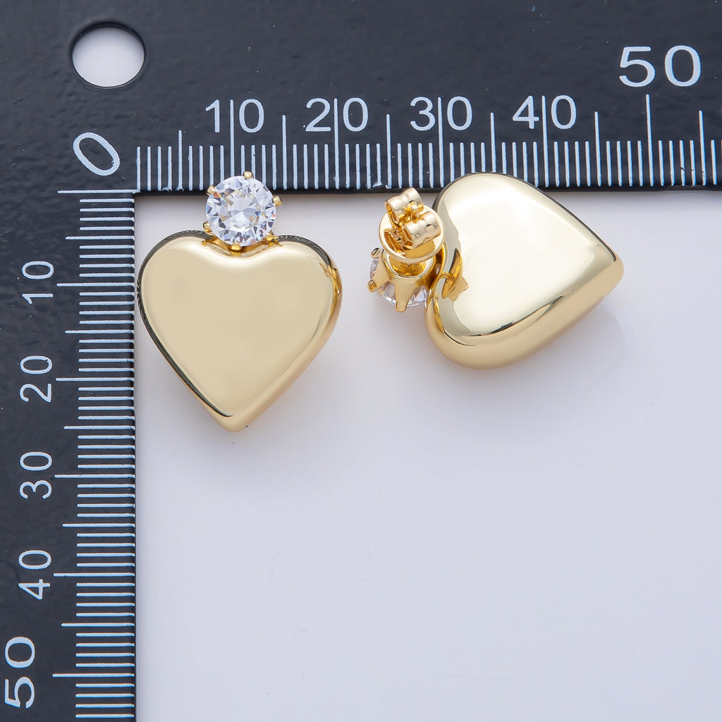 18K Gold Filled 24mm Clear CZ Heart Minimalist Stud Earrings | AD1653