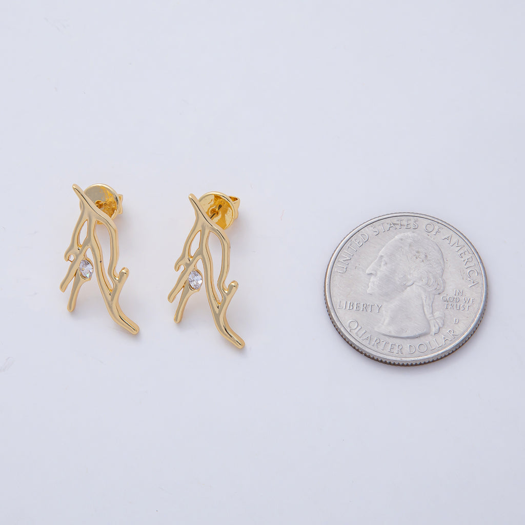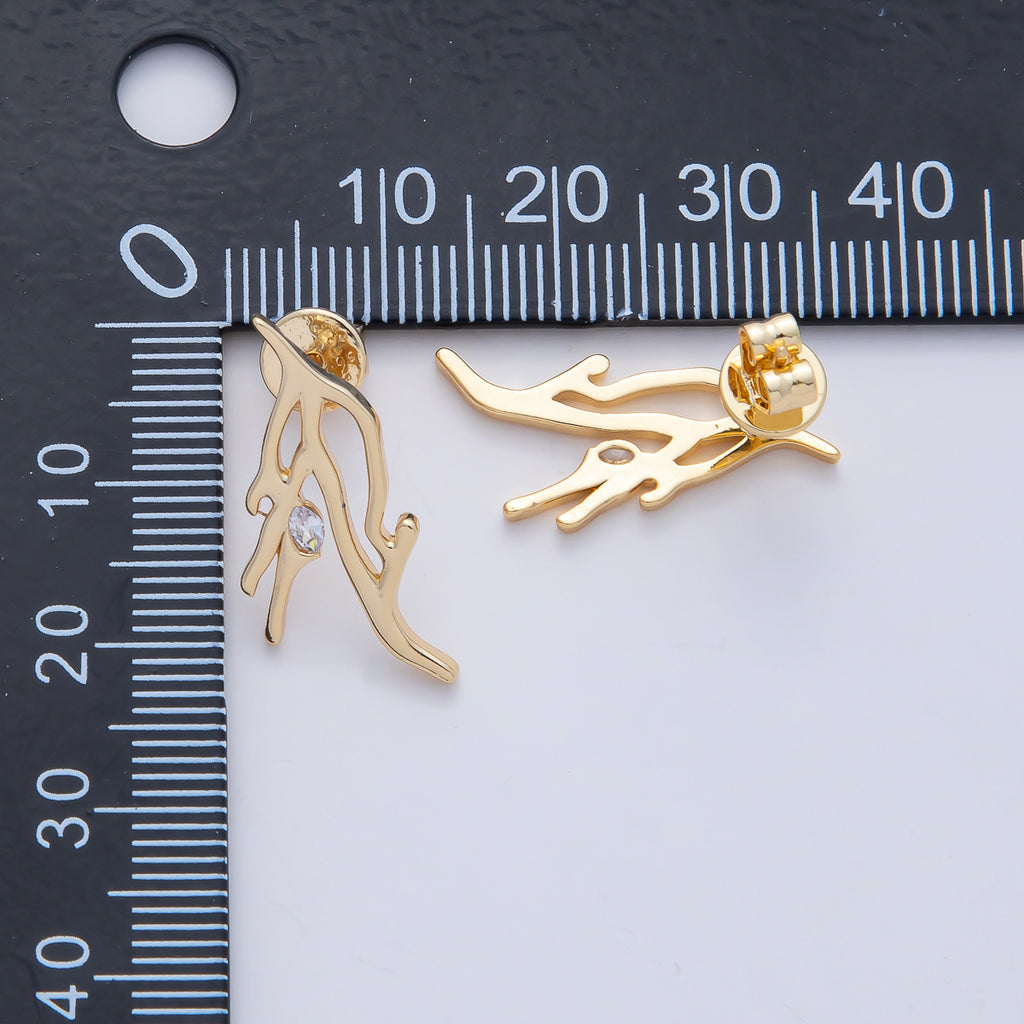 18K Gold Filled 24mm Clear CZ Geometric Lined Leaf Stud Earrings | AD1665