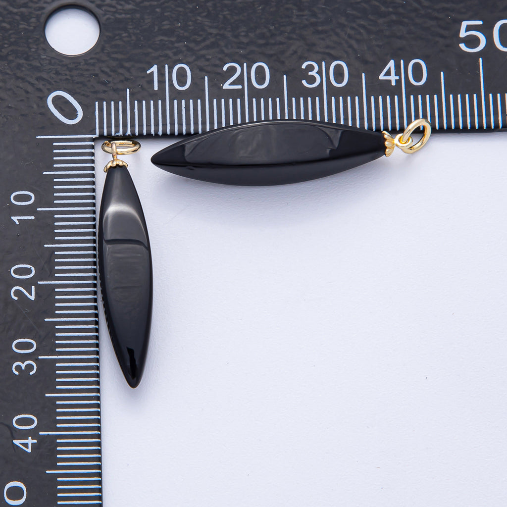 18K Gold Filled 34mm Black Onyx Navette Gemstone Drop Charm | AK051